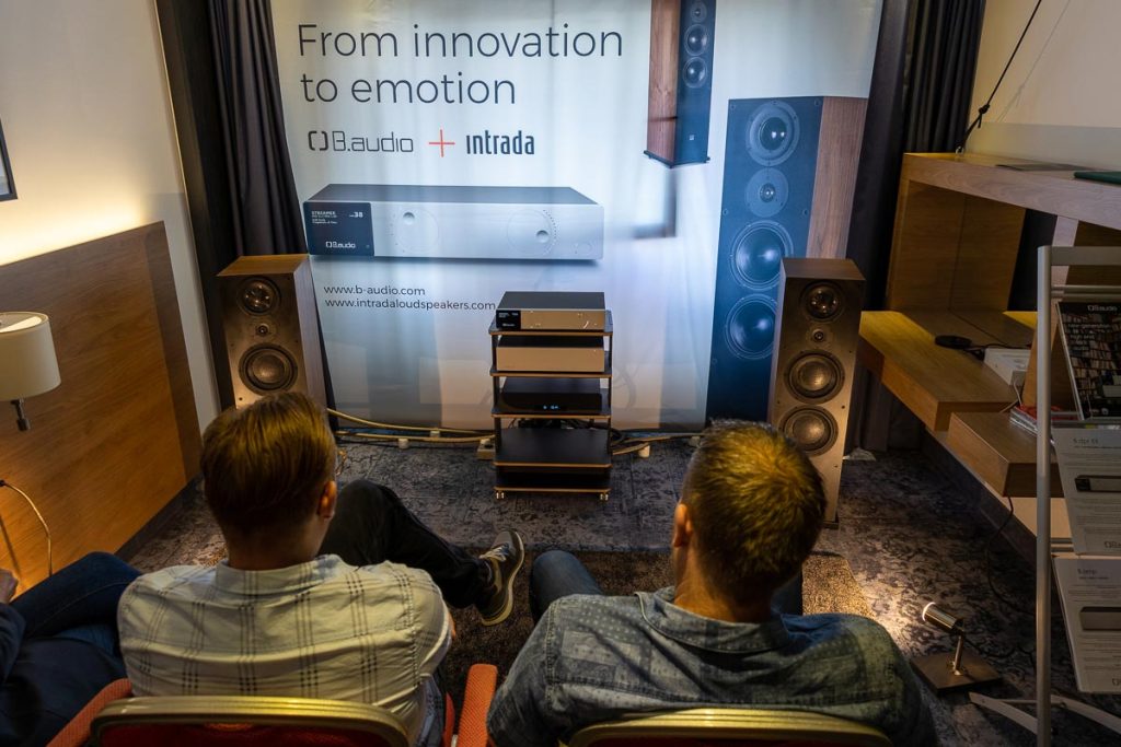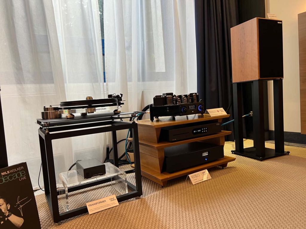 Auf der Suche nach weiteren betörenden Anlagen wende ich mich anschließend den vom Erdgeschoss bis in den zweiten Stock verteilten kleineren Räumen zu. Superb abgestimmte Ketten finde ich dort mehr, als ich an dieser Stelle aufzählen könnte. Erst im Nachhinein fällt mir auf, dass ich in einigen Räumen deutlich länger als nur ein oder zwei Stücke lang sitzen blieb. Ein Gespann aus Harbeths Monitor 30.2 XD und dem Manley-Röhrenverstärker Stingray II etwa fesselte mich mit seiner großartig natürlichen Tonalität.