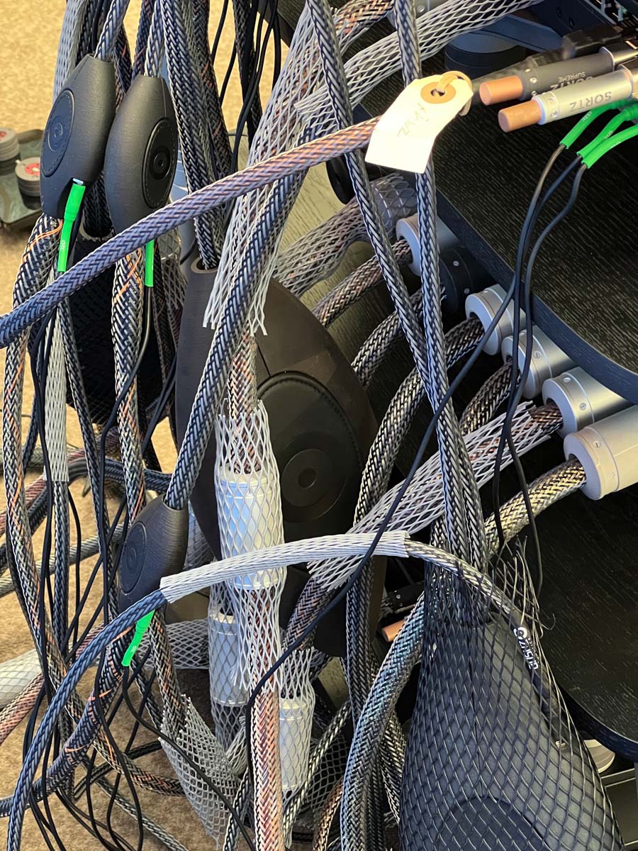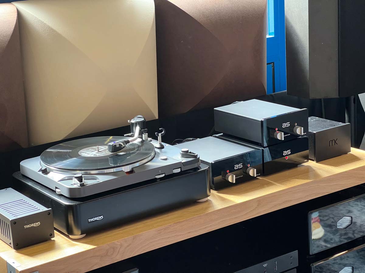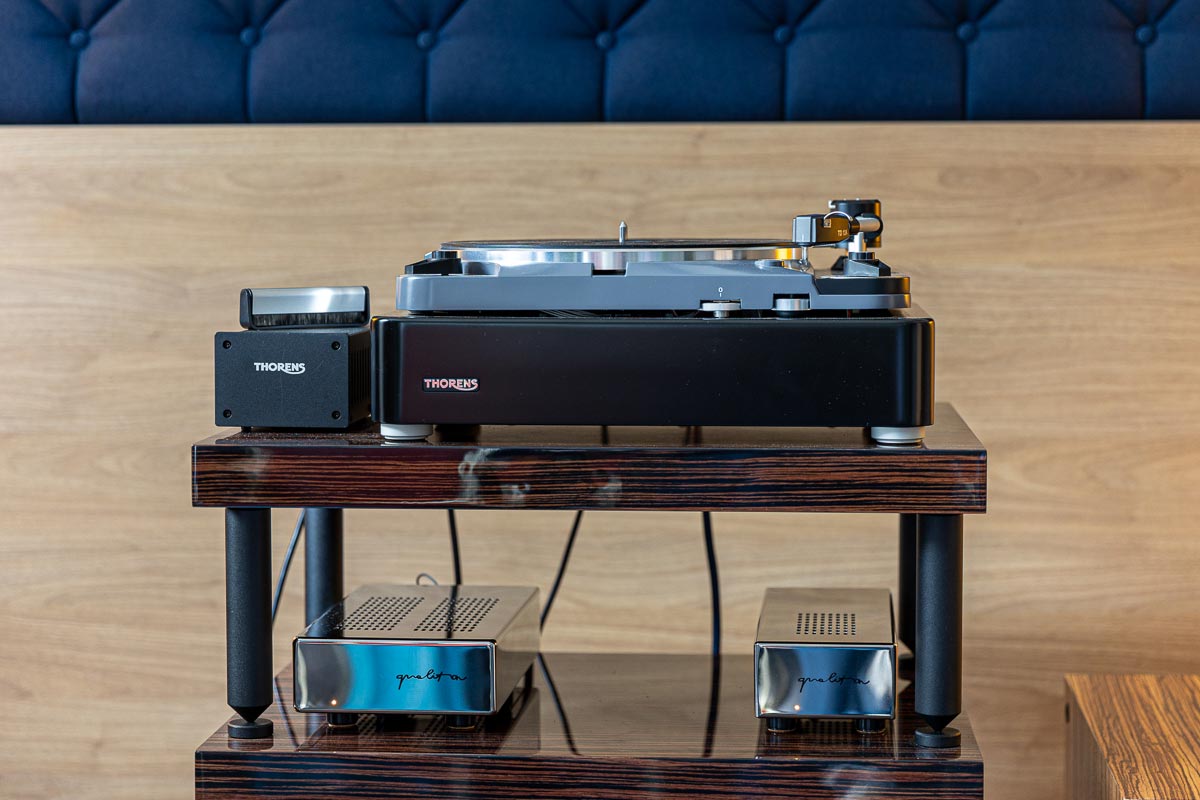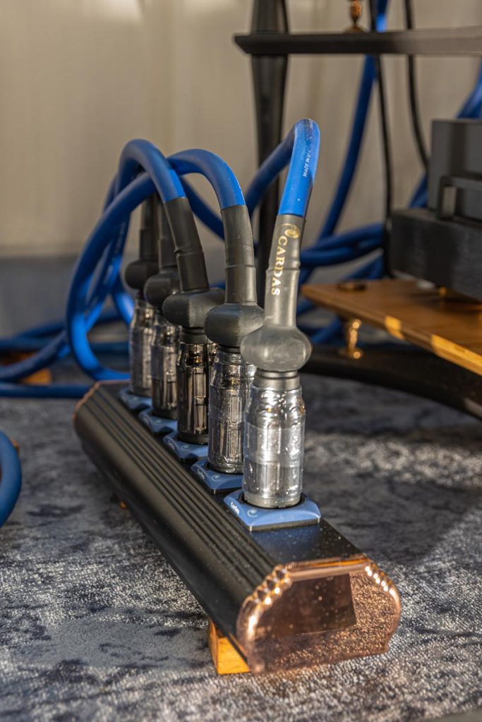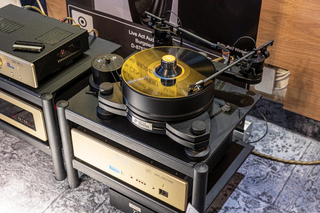 Das mag allerdings auch an der hervorragenden Moderation von Input Audio-Vertriebsinhaber Bernd Hömke gelegen haben, der mit seinem Auditorium einen regelrechten Dialog über die aufgelegten Schallplatten und deren Klangqualitäten führte. Ebenso fesselte mich die Kombination aus Lautsprechern von Verity Audio, einem TW-Acustic-Plattenspieler und feinen Blues-Platten im Raum von Sieveking Sound. Übrigens die einzige Anlage, die selbst die Mehrfachleiste (bestückt mit Cardas-Strippen) als Sehenswürdigkeit inszenierte.
