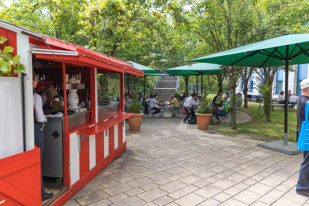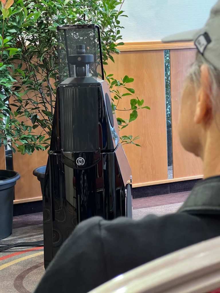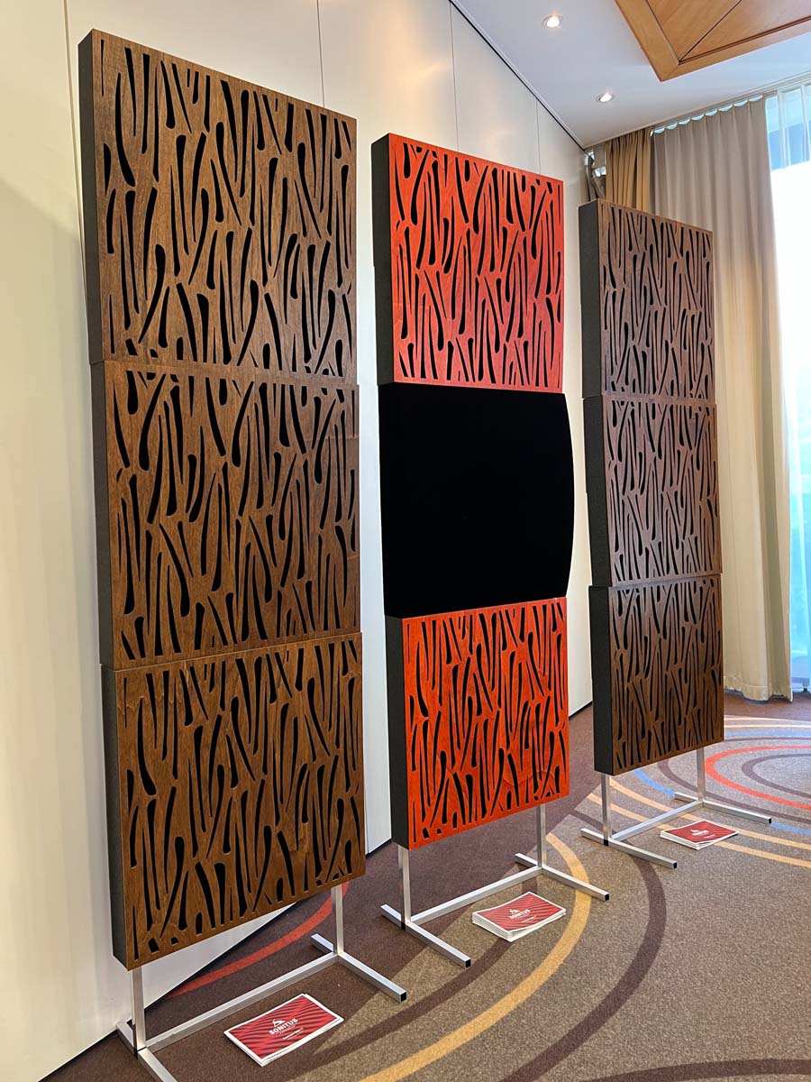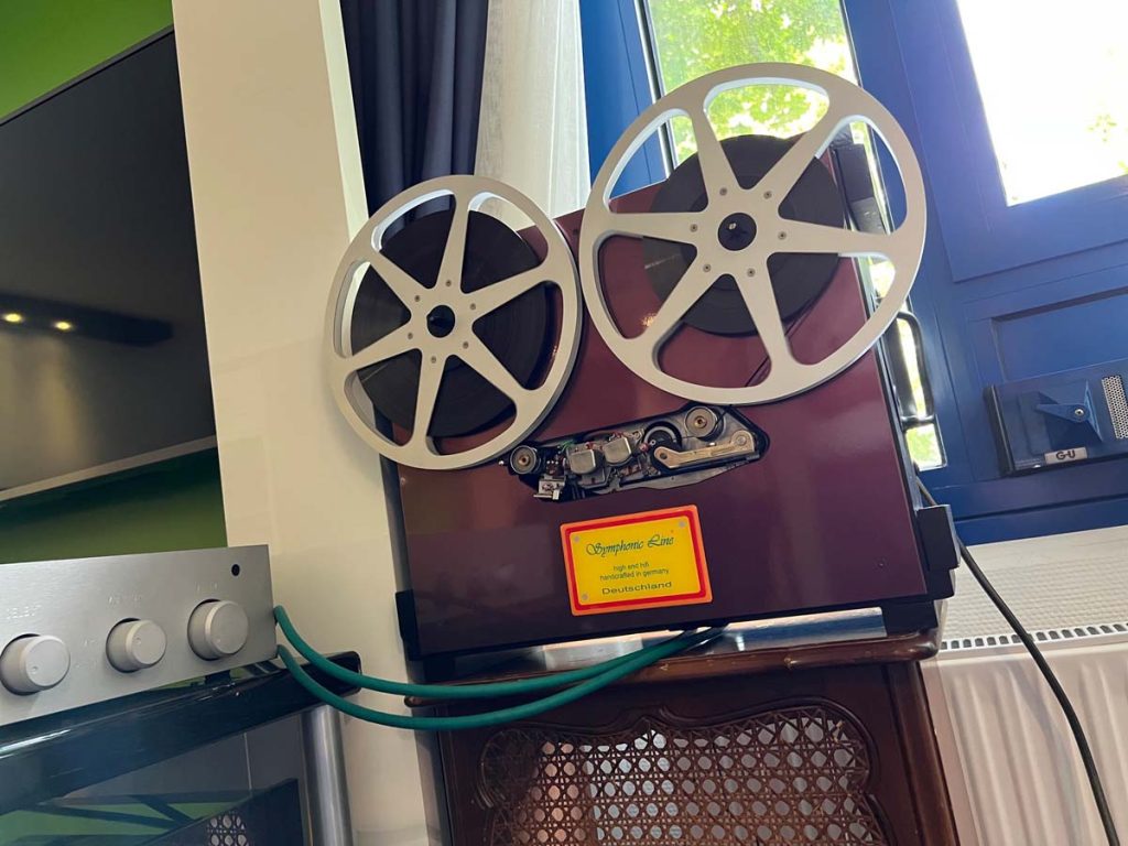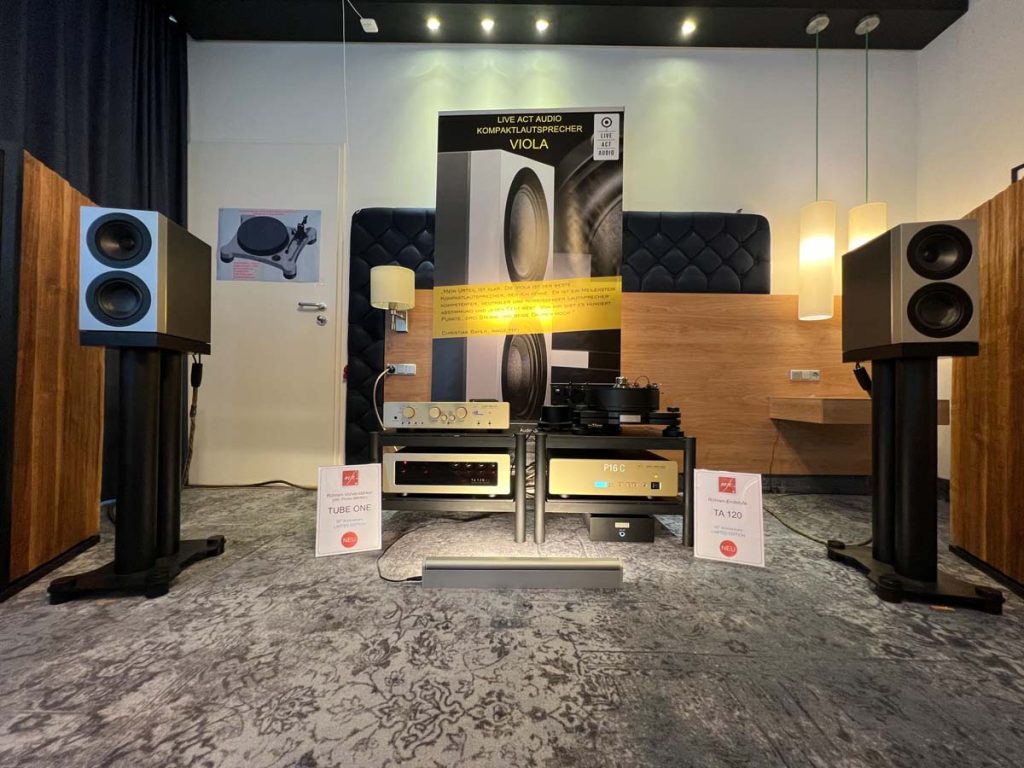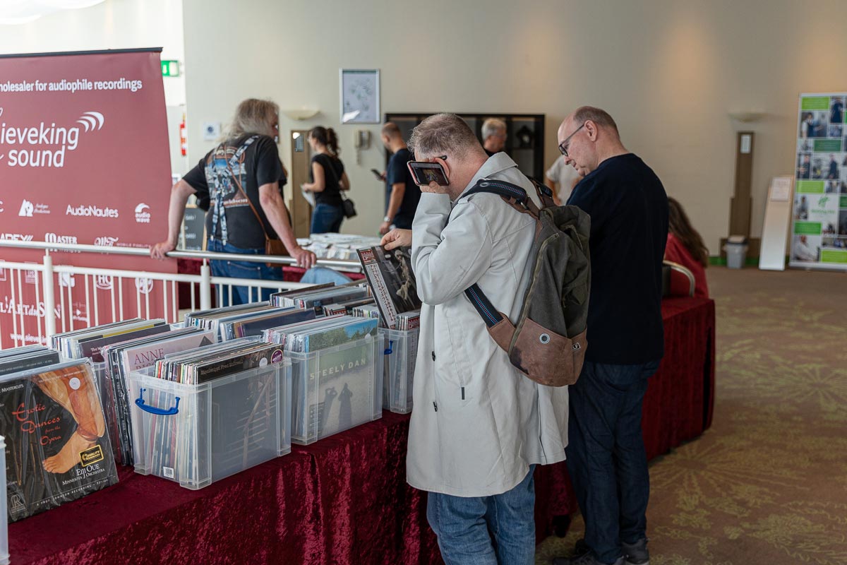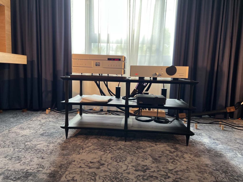 Es ist undankbar, doch zeigt sich die Qualität einer guten Organisation oft in Details, die man nur allzu gern übersieht: Niemand muss hier lange nach dem Hallenplan suchen, der direkt am Eingang hundertfach ausliegt. Und selbst ohne das kleine Heft kann man sich dank klarer Ausschilderung gut zurechtfinden. Entsprechend schnell verteilen sich die ersten Besucher: Man lauscht den Anlagen und Vorführungen von bekannten Größen, Exoten und Newcomern oder trifft sich anschließend in dem gut frequentierten Café des Hotels oder im „Biergarten“, der leise Erinnerungen an die HIGH END in München weckte. Überall tauschen Besucher bei Kaffee, Kuchen oder Käsespätzle ihre Erfahrungen aus und diskutieren über das gerade Gehörte. Eine vergleichbar entspannte und familiäre Atmosphäre kann sich bei einer großen Hallenmesse einfach nicht einstellen. Dimensionen und Anzahl der Aussteller waren dieses Jahr selbstredend etwas kleiner als noch 2019, doch das brachte einen merklichen Vorteil: Auf meinem Weg durch die Zimmer und Säle der Aussteller dämmert mir schnell, dass die Messe an den beiden Tagen bequem zu schaffen ist. Automatisch verlangsame ich meinen Schritt, nehme beinahe in jedem Raum Platz und höre mir mehrere Titel über die Systeme und Ketten an. Diese Muße scheint sich auch bei allen anderen Besuchern eingestellt zu haben. Alle wirken entspannt, und es kommt praktisch nie zur Bildung von „Pfropfen“ in den Eingängen der Zimmer, weil manche „einfach nur kurz die Nase reinstecken“ möchten.