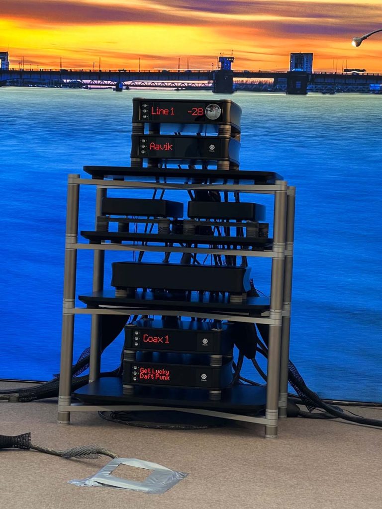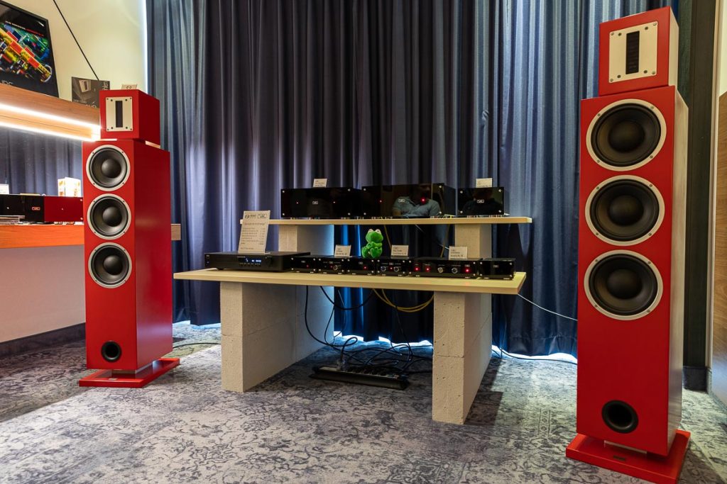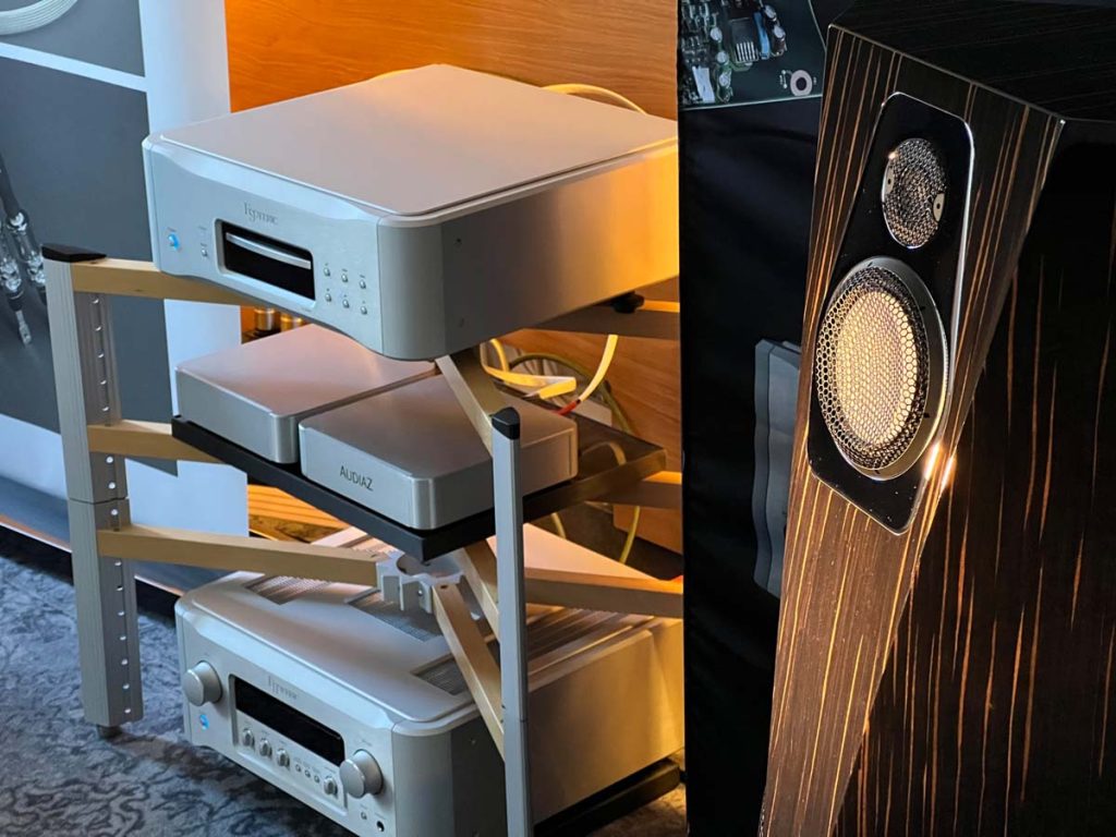 Weiter geht es zu „Monet“ nebenan, wo sich die Audio Group Denmark eingerichtet hat. Auch dieser Raum ist optisch die Wucht: Eine große Leinwand hinter der Anlage versetzt mich nach Aalborg, wo ein spektakulärer Sonnenuntergang für eine farbenfrohe Kulisse sorgt, während ich mich von einigen der besten Komponenten aus der HiFi-Weltmacht Dänemark beschallen lasse. Besonders beeindruckt mich die X Speaker Series, eine neue Lautsprecherbaureihe, die den von Børresen bekannten hervorragenden Klang in eine erreichbare Preisklasse transportieren soll.