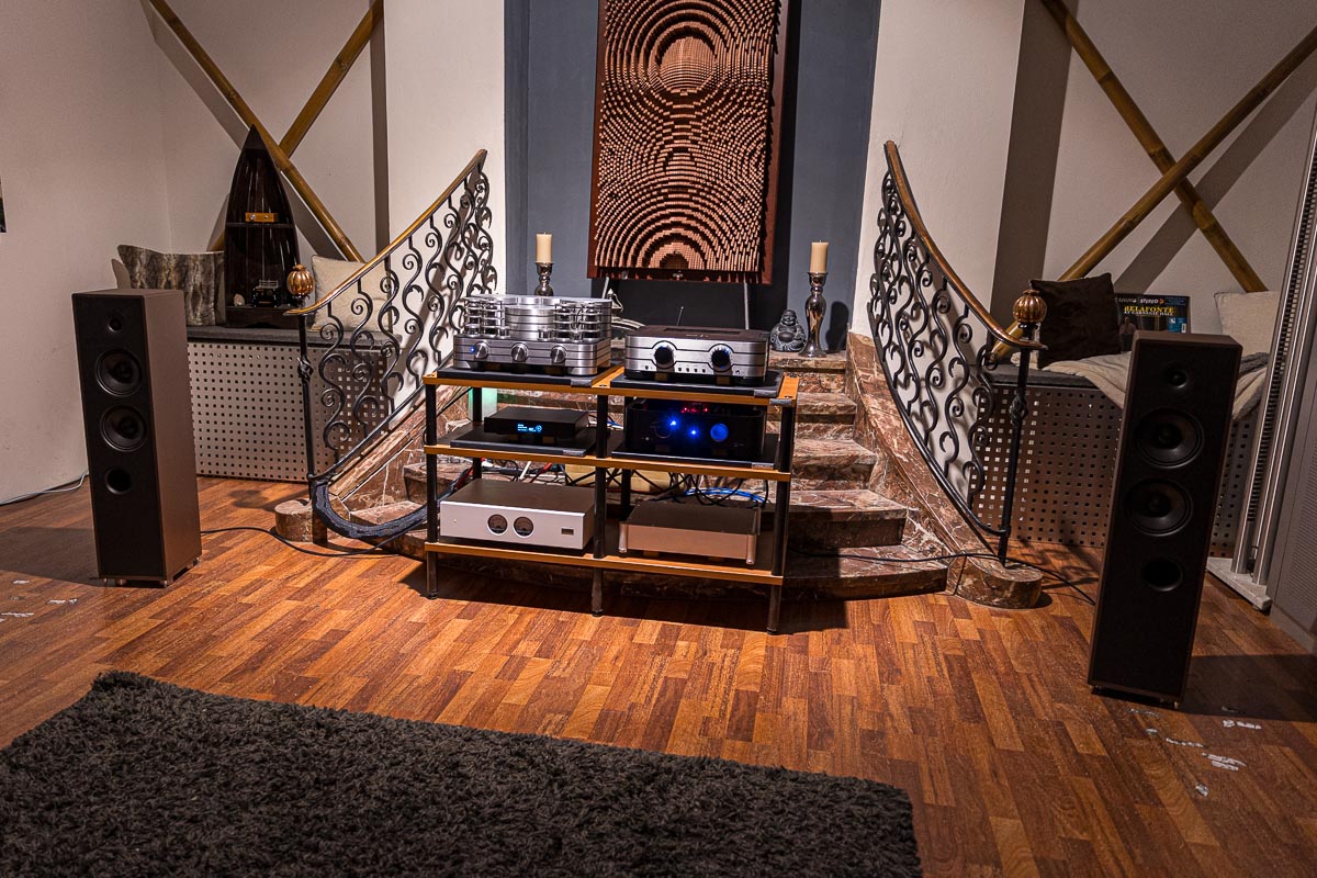 Außerdem darf man nicht vergessen, dass im Marriott Hotel München die Parallelmesse hifideluxe mit ihrerseits einigen Dutzend Herstellern gastierte. 42 Marken zählte der Aussteller dieses Jahr. Wir waren mit mehreren Kollegen vor Ort (die Neuheiten sind in die übrigen Messenachlesen integriert). Für mich besonders spannend war ein Besuch bei Familie Qvortrup im Audio Note-Zimmer. Noch vor wenigen Monaten berichteten wir über die ersten Hertzschläge des neuen Super-DACs Fifth Element. Auf der hifideluxe spielte er cremig und seidig an (auch das neu) AN-E mit Field-Coil-Treibern.