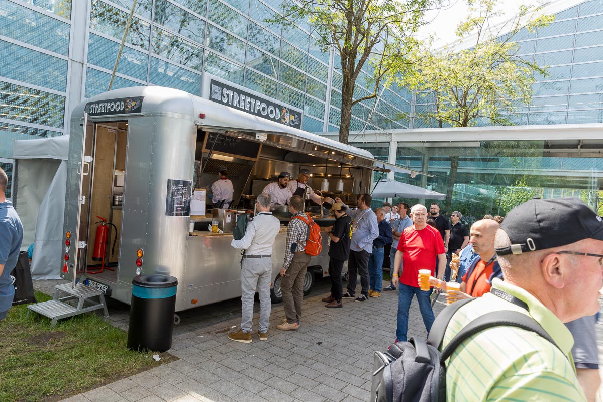 Zwei kleine Anmerkungen hätten wir allerdings: Der Veranstalter setzt bei den Raumplänen mittlerweile auf Bildschirm-Tafeln. Eine großartige Idee, denn anders als die gedruckten Wegweiser früherer Jahre berücksichtigen die digitalen Pläne Änderungen auf den letzten Drücker, die immer wieder vorkommen. Einige dieser Displays standen jedoch direkt an Treppenaufgängen der Atrien, es bildeten sich vor allem am Samstag undurchdringliche Besucher-Pfropfen. Das ließe sich durch dezentes Umplatzieren vermeiden. Anmerkung Nummer zwei ist eine leidige Feststellung, die zum Repertoire nahezu aller Messen gehört. Ich sag es mal so: Wer auf lapprige 16-Euro-Pizzen oder überteuerte Brezn vom Vortag steht, für den war der Catering-Bereichen “Powered by Käfer” der reinste Himmel …