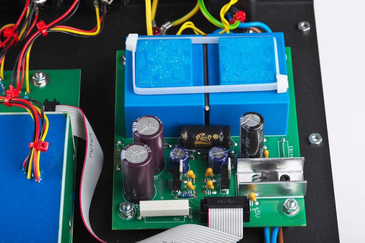 Alternativ lässt sich via Kippschalter auch die Transistor-Ausgangsstufe anwählen. Die ist – selbstverständlich – eine komplette Eigenentwicklung, über deren Details der MFE-Chefdenker ebenfalls nicht allzu viele Worte verlieren möchte: „Sicher könnte ich technische Details nennen – und damit wieder vom Wesentlichen ablenken. Denn technische Daten sagen nichts über den Klang. Dass wir aufwendig selektierte und vermessene Bauteile verwenden, sei aber betont.“