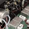 Hinter den symmetrischen Hochpegel-Eingängen verwendet MFE kompakte Übertrager, die das Signal für die unsymmetrische Verstärkerschaltung desymmetrieren. Am Ausgang läuft es umgekehrt: Hier produzieren Übertrager ein symmetrisches Ausgangssignal, während der unsymmetrische (Cinch-)Ausgang via Kondensator ausgekoppelt wird. Übrigens gibt es auch einen simpel parallel angeschlossenen Kopfhörer-Ausgang, da die Ausgangsstufe ja niederohmig genug und wirklich bärenstark ist.