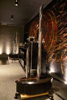 Die Speisekarte kommt (leider) ohne Dessert-Teil aus, dafür kann sich die Weinauswahl sehen lassen. Feine Weine sind Nams Leidenschaft, und dass etwa Riesling ausgezeichnet zu asiatischer Küche passt, hat sich ja schon seit längerem herumgesprochen … Weinkenner dürften im Minakami jedenfalls voll auf ihre Kosten kommen. Aber vielleicht soll ja die Anlage die Nachspeise ersetzen. Der Musikbereich beginnt hinter der Schauküche und nimmt etwa ein Viertel der Gesamtfläche des Minakami ein. Hier breitet sich die opulente Anlage fast über die gesamte Breite des langgestreckten Restaurant-Raums aus. Was an Gerät aufgefahren wird, ist vom Feinsten – neben der erwähnten Wadia-Kombi aus CD-Laufwerk und D/A-Wandler vor allem die Vintage-Plattenspieler EMT 948 und Luxman PD444 sowie die ebenso riesige wie rare Röhrenvorstufe Brakemeier Anzai. Und doch verblasst all das hinter den Lautsprechern, die es so ein zweites Mal nicht zu erleben gibt: ein Stereo- Paar Dreiwege-Einheiten, basierend auf dem technischen Prinzip des Karlson-Couplers. Gebaut hat sie, ebenso wie die passenden Leistungsverstärker, der Berliner Klaus Schulze. Die hochglanzpolierten, über die gesamte Länge geschlitzten Metallröhren für Hoch-, Mittel- und Tiefton, an deren hinteres Ende jeweils die passenden Lautsprechertreiber angeflanscht sind, wirken filigran, sind aber für hornähnliche Dynamik gut und fluten das Lokal souverän mit Musik. Im Tiefbass helfen zwei konventionelle Subwoofer mit, deren cafétischgroße Membranen und oberschenkeldicke Reflexöffnungen in jedem kleineren Raum Angst und Schrecken verbreiten würden. Das ganze Ensemble gibt sich im akustisch gelungenen, angenehm bedämpften Raum aber als feinsinnig aufspielende Tafelmusiktruppe, die am liebsten klassischen Jazz zu Gehör bringt.