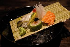 Erster Unterschied: der Ort. War das in einer unauffälligen Seitenstraße gelegene Lang Nuong noch Treffpunkt für Insider und Stammgäste, dürfte mit der Lage in der geschäftigen, gastronomisch passenderweise stark asiatisch geprägten Kantstraße auch die sogenannte Laufkundschaft einkehren. Zweiter Unterschied: der Look. Der Hausherr hat dem Minakami ein edles, weltstädtisches Lounge- Ambiente verordnet. Das Interieur ist in warmen Erdtönen gehalten, man sitzt an rustikal-minimalistischen Massivholztischen auf einfachem, aber bequemem Holzgestühl – und hat die Küche im Blick, die ganz modern als offener Kochbereich freien Blick auf das Treiben zwischen Robata-Grill und Sushi- Theke bietet.