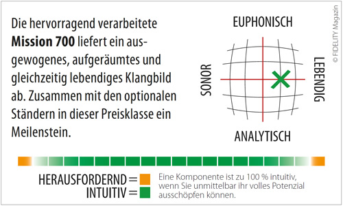 Die hervorragend verarbeitete Mission 700 liefert ein ausgewogenes, aufgeräumtes und gleichzeitig lebendiges Klangbild ab. Zusammen mit den optionalen Ständern in dieser Preisklasse ein Meilenstein.