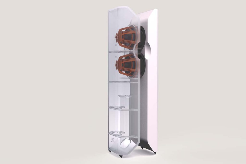 ‘Jede Kraft hat eine gleiche und eine entgegengesetzte Reaktion’ – die Concept 50-Tieftöner wurden unter Berücksichtigung von Newtons drittem Gesetz entwickelt und sind paarweise in einer “Force Cancelling”-Konfiguration einander gegenüberliegend montiert. Diese exakte Symmetrie bedeutet, dass jede unerwünschte Schwingungsenergie, die ein Audiosignal im Treiber erzeugt, von seinem gegenüberliegenden Zwilling aufgehoben wird. Dies ist besonders wichtig bei Tieftönern, da diese die unerwünschten Vibrationen normalerweise auf das Gehäuse übertragen. Zudem werden die Treiber selbst nicht erschüttert, was zu weniger Verzerrungen und einer besseren Kontrolle führt. Dadurch liefert der Lautsprecher einen Frequenzgang im Raum (-6 dB) von 21 Hz bis 60kHz mit minimalen Verzerrungen.