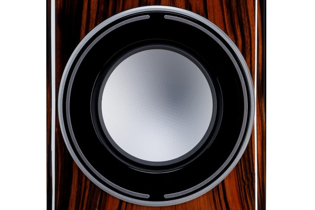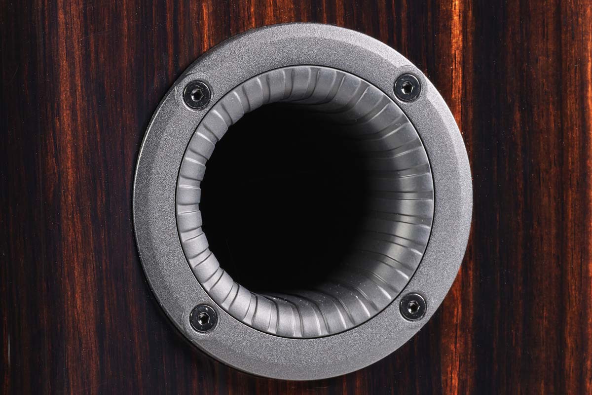Der Antrieb, der mit einem kräftigen Neodym-Magneten und einer kantengewickelten Unterhang-Schwingspule arbeitet, tut ein Übriges, um dem Mitteltöner beste Manieren mitzugeben. Dabei waren die Entwickler vor allem auf eine Erweiterung der Bandbreite nach oben hin aus, um einen möglichst geschmeidigen Übergang zum Tweeter zu ermöglichen. Die Trennfrequenz ist dabei mit 2,85 Kilohertz gar nicht allzu hoch angesetzt, allerdings – und das ist neu – gelingt der Übergang mittels elliptischer Filter, die direkt im Übergangsbereich mit flachen Flanken ansetzen, um einen homogenen Übergang zu schaffen, und daraufhin progressiv steiler werden, damit der Pegel zur Aufbrechfrequenz hin tief in die Sphären der Irrelevanz abtaucht. Dieser Designansatz des „erst sanft, dann hart“ braucht natürlich etwas mehr Platz auf dem Frequenzband als Filter, die von vornherein mit steilen Flanken rangehen, und da hilft es natürlich, wenn sich der Mitteltöner bis weit über den Crossover-Punkt zu benehmen weiß.