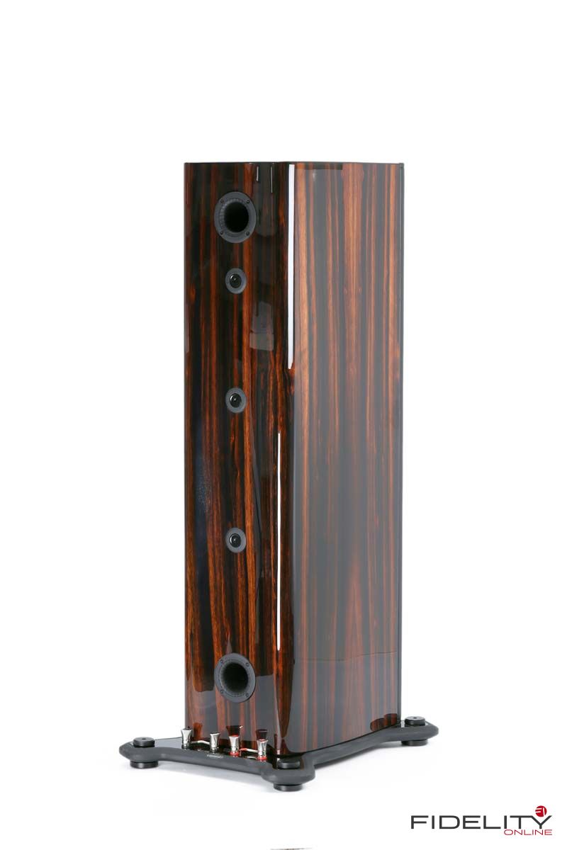 Bestückung: 2 x 20-cm-Tieftöner mit Nomex-Aluminum-Sandwich-Membran, 10-cm-Mitteltöner mit Nomex-Aluminum-Sandwich-Membran in eigenem Gehäuse (TLE = Tapered Line Enclosure), AMT(MPD)-Hochtöner