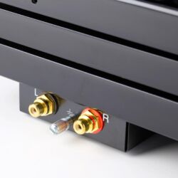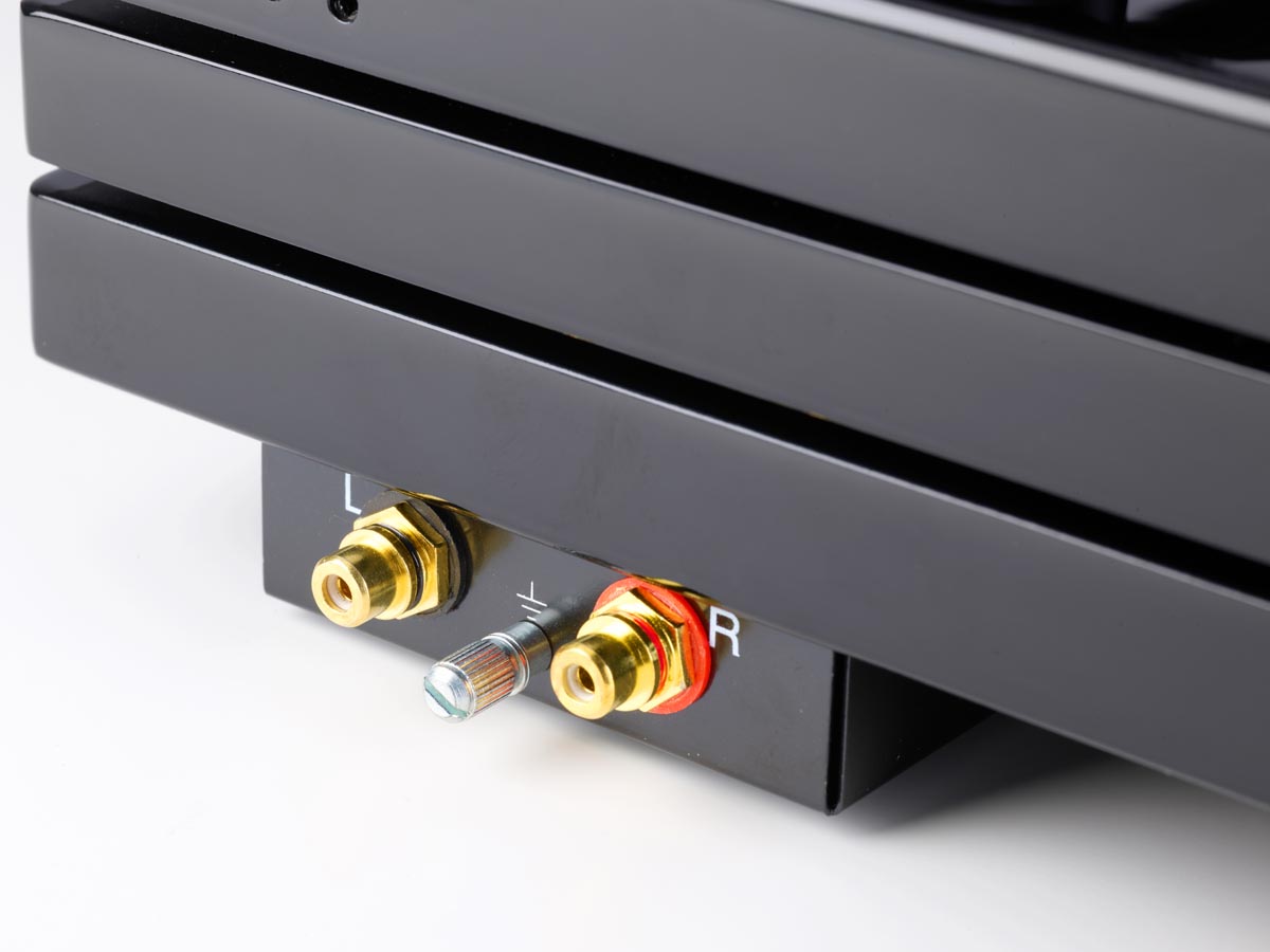 Die akustisch relevanten Bauteile, der Tonarm und der darin eingebaute Tonabnehmer sowie das invertierte Lager aus Sinterbronze und der Plattenteller befinden sich auf dem obersten Chassis. Das untere Chassis nimmt mit drei Spikes Kontakt zur Stellfläche auf und trägt das Anschlussterminal. Das mittlere Chassis fungiert als „Troubleshooter“ und entkoppelt über Sorbothan-Halbkugeln die beiden anderen Chassis voneinander. In dieser Konstruktion ist der mmf-9.3. deutlich schwerer und massiver als ein Brettspieler, bringt aber noch nicht die Masse und Behäbigkeit eines echten Masselaufwerks mit. Dennoch würde ich nach einigen Wochen des ausgiebigen Hörens das Dreifach-Chassis aufgrund seiner ausgeprägten Laufruhe und der Fähigkeit, den Sound grundtonstark aus dem Bassbereich aufzubauen, als kleines Masselaufwerk bezeichnen, wobei es optisch wesentlich leichtfüßiger wirkt.