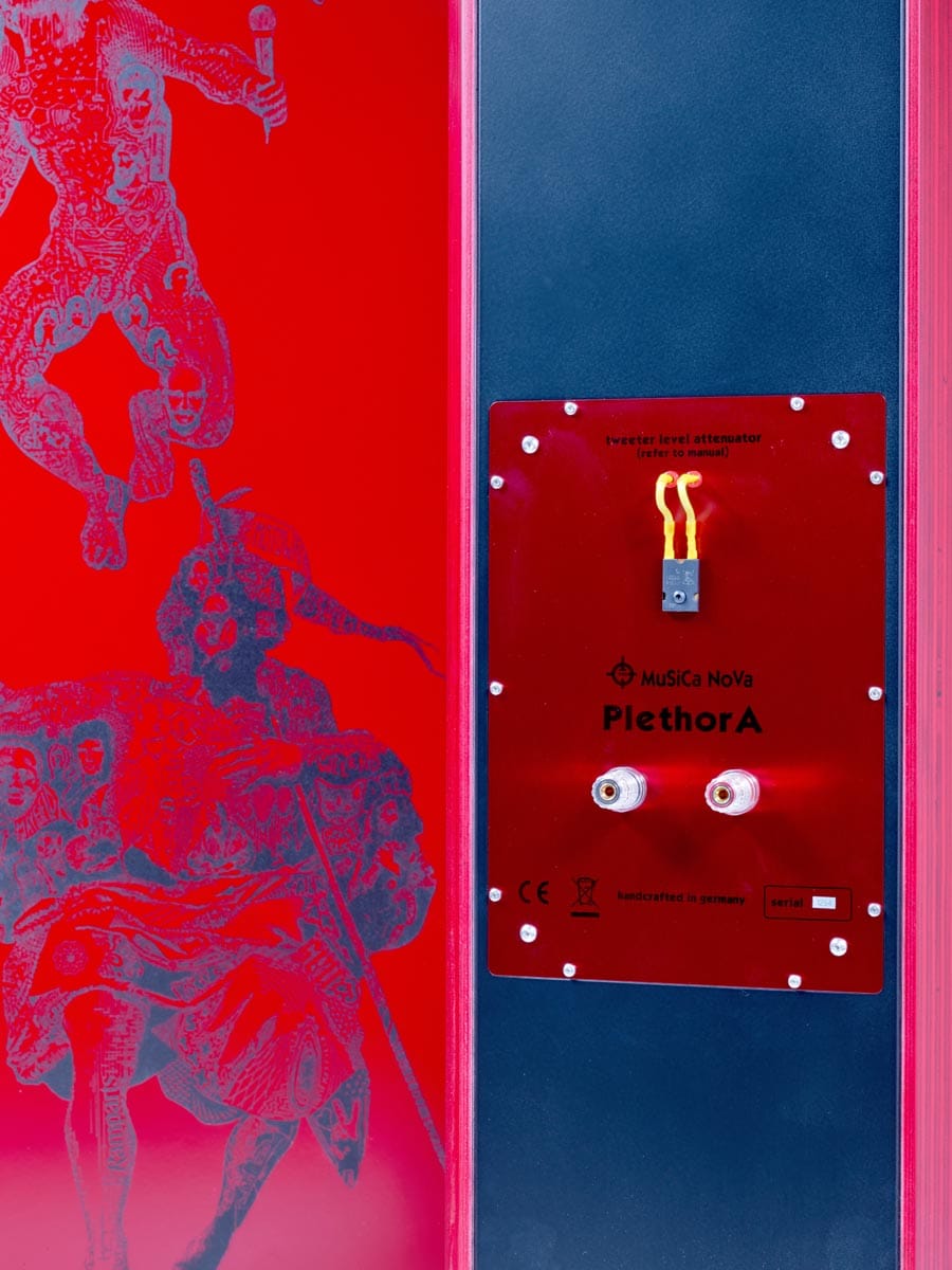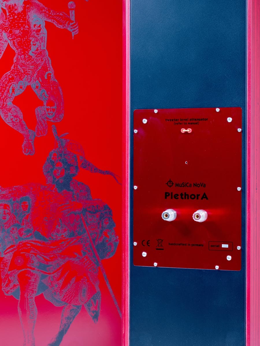 Das passiert mir mit der PlethorA noch öfter, ob ich nun in Dermot O’Learys formidable Saturday Sessions (Sony Music) hineinlausche oder das spannende, fast völlig instrumental gehaltene Album Dionysus der Weltmusik-Formation Dead Can Dance in einem Rutsch durchhöre. Was auch klanglich eine Achterbahnfahrt aus experimentellen Sounds und Ethno-Beats wird. Dazwischen schaue ich noch in die Herstellerinformationen zur PlethorA hinein. Mein Testexemplar hat ein sehr sauber verarbeitetes Furnier aus hellem Birnenholz, das Fotomuster in der Redaktion kommt als „Arte Felix“ (der Sohn von Firmenboss Harald Pensel ist Bildender Künstler) in Dunkelrot mit künstlerisch gestalteten Musikerporträts daher – einschließlich farblich passendem Waveguide. Und auch so gut wie jede andere Oberflächenausführung ist lieferbar, denn die MuSiCa NoVa PlethorA ist ein handgefertigtes Manufakturprodukt, jede Ausführung ein Unikat, auf das der Kunde zwischen zehn und zwölf Wochen warten muss und das mit 6990 Euro Stückpreis angesichts des Gebotenen wohlfeil zu nennen ist. Spielt die PlethorA doch weit über ihrer Preisklasse – und ist damit nicht nur eine echte Superbox, sondern auch ein genuines Schnäppchen.