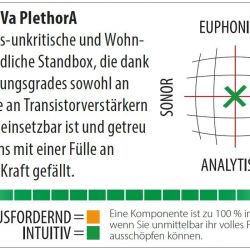 Die eingangs erwähnte Überfülle, auf die sich der Name dieses Lautsprechers bezieht, ist allezeit vorhanden: ganz viel Volumen, ganz viele Details, ganz weiter Dynamikumfang. Und das aus einer relativ schlicht gezeichneten Kiste, die ohne Sockelplatte beziehungsweise Auslegerfüße gerade einmal 1,16 Meter hoch, 23,4 Zentimeter breit und 45 Zentimeter tief ist. Dass das Stückgewicht bei 38 Kilo liegt, ermöglicht dem Besitzer, seine PlethorA auch allein von der Stelle zu bewegen. In meinem Hör- und Arbeitszimmer konnte ich so die beste Position selbst herausfinden, wobei die PlethorA, wie schon gesagt, ziemlich unkritisch in Sachen Aufstellung ist und weder relative Wandnähe noch eine geringe Distanz zur Rückwand sonderlich krumm nimmt. Wenn andere Konstruktionen schon längst mit aufgeblähtem Bass und schwammiger Ortbarkeit nerven, bleibt die PlethorA in den Tiefen knackig und klar definiert, in der Raumabbildung erstaunlich präzise und in der Tonalität absolut unverfärbt.