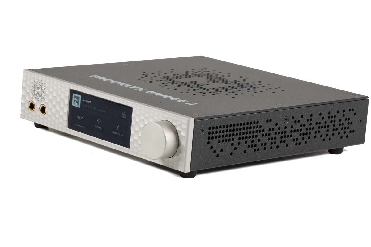 Zugegeben: Multitalente und Allroundgeräte sind mittlerweile keine Seltenheit mehr. Der Brooklyn Bridge II versammelt aber so viele Funktionalitäten, dass es die üblichen Gerätekategorien geradezu sprengt. Denn man kann ihn als Streamer verwenden oder als DAC. Er kann als Vorverstärker dienen, hat eine MM-Phonostufe und treibt einen Kopfhörer an (mit einem Adapter auch symmetrisch). Und: Er ist nicht nur einfach „Roon-ready“, sondern ein Roon-Server – und zwar, wie der Vertrieb nicht ohne Stolz behauptet, der „einzige echte Roon-Core“.
