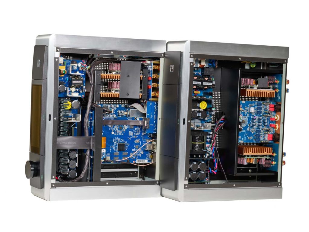Ausstattung: Streamingmodul mit Vorbereitung für Tidal/Spotify/Moon, Raumeinmessung Dirac Live, 2 Schächte für Erweiterungsmodule, Metallfernbedienung