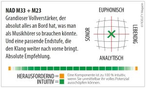 Als uns Mike Besser vom Deutschen NAD-Vertrieb anbot, eine Kombination aus Vollverstärker und passender Endstufe zum Hören zu schicken, waren unser Spieltrieb und die Neugierde natürlich sofort geweckt. Denn was uns früher so begeisterte, kann ja nicht grundsätzlich falsch gewesen sein. Manchmal verliert man gute Ideen schlicht aus den Augen …