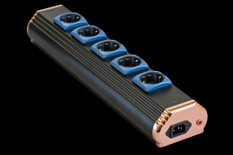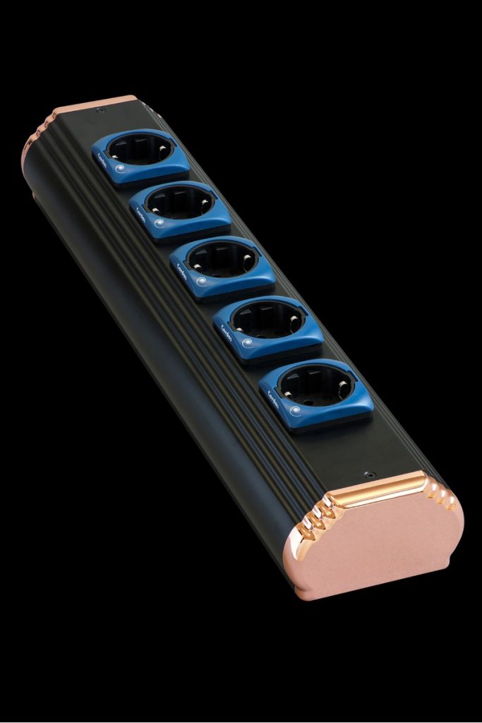 Die Kontakte für Neutral- und Außenleiter (“Phase”) bestehen aus gelacktem, hochreinem Cardas-Kupferdraht mit 2,6 mm Durchmesser und werden für jeden einzelnen Steckplatz separat geführt (Punkt-zu-Punkt-Verkabelung). Die 2,2 mm dicken Litzen der Schutzleiter sind ebenfalls aus hochreinem Cardas-Kupfer gefertigt. Zusammen sind die fünf Schutzleiter an einen 1 kg schweren Kupferblock als zentralem Massepunkt der Anlage angeschlossen. Es handelt sich somit um eine besonders aufwendige Form einer sternförmigen Erdung.