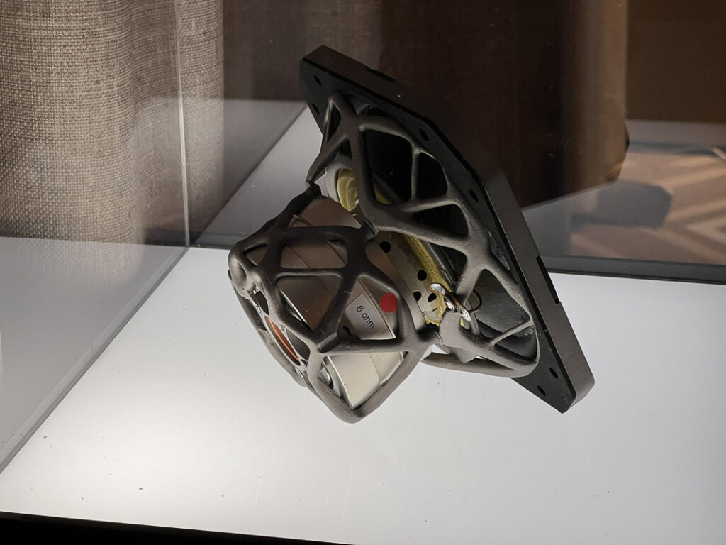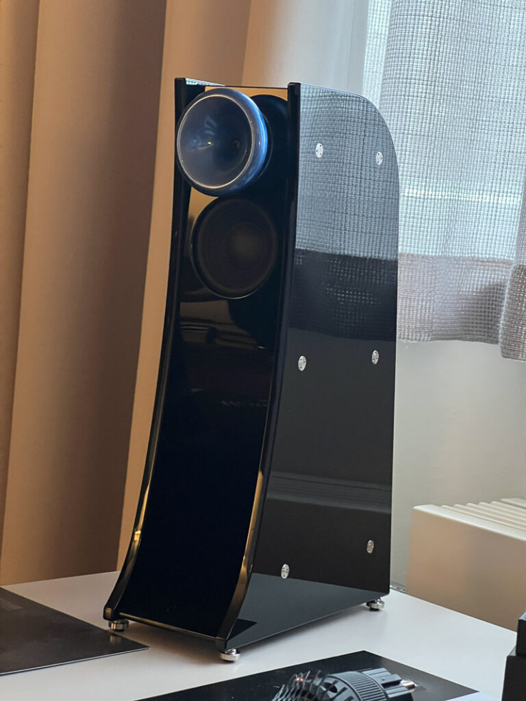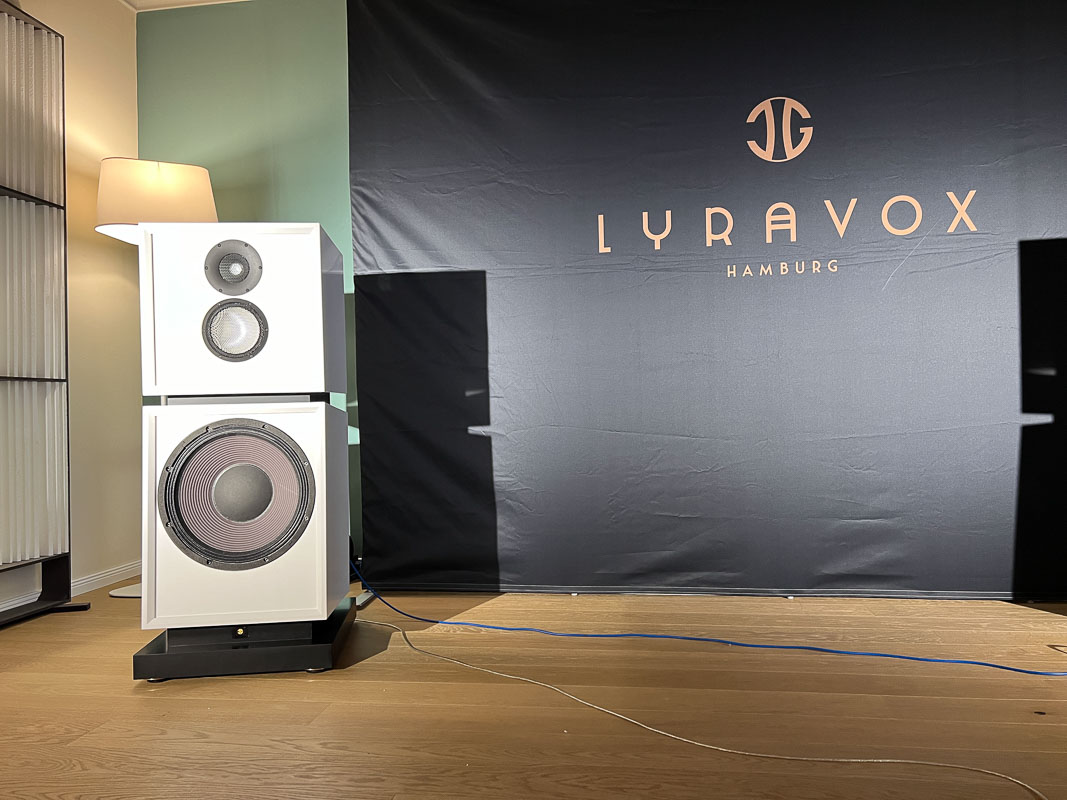 Das neben der Menhir A meistfotografierte Exponat der NDHT 2024 konnte man bei Lyravox finden. „Karlmann“ heißt der Neuzugang bei den Hamburgern, der tatsächlich noch so frisch ist, dass er seinen Namen erst während des Aufbaus für die Show erhielt. Eigentlich als kleiner Witz gedacht, wurde der Moment so zur Taufe des Aktivlautsprechers. Karlmann besteht aus zwei ultramassiven Kunststeingehäusen, das obere als Vollbereichslautsprecher, das untere als zusätzlicher Woofer. Form und Optik des Lautsprechers bilden mit ihrem umwerfenden Retro-Charme einen krassen Kontrast zum Hightech im Inneren: Wie gewohnt kommen Treiber von High-End-Manufakturen wie Accuton zum Einsatz. Und natürlich lässt sich das Männchen feinfühlig via DSP und FIR-Filterwerk an den Raum anpassen. Und das zeigte Wirkung: Wir können den Klang der Aktiven nur als umwerfend cremig umschreiben.
