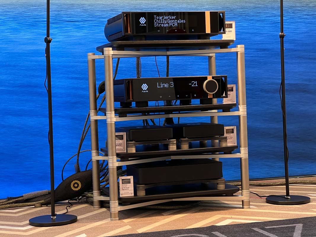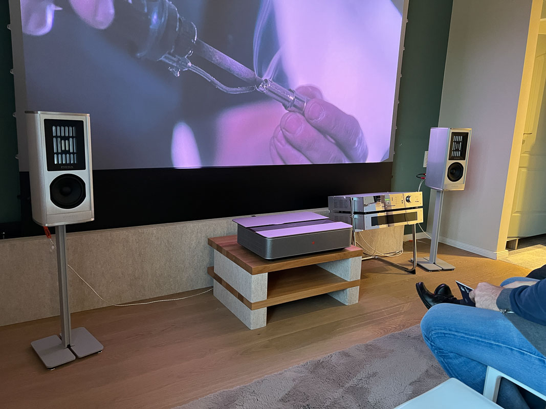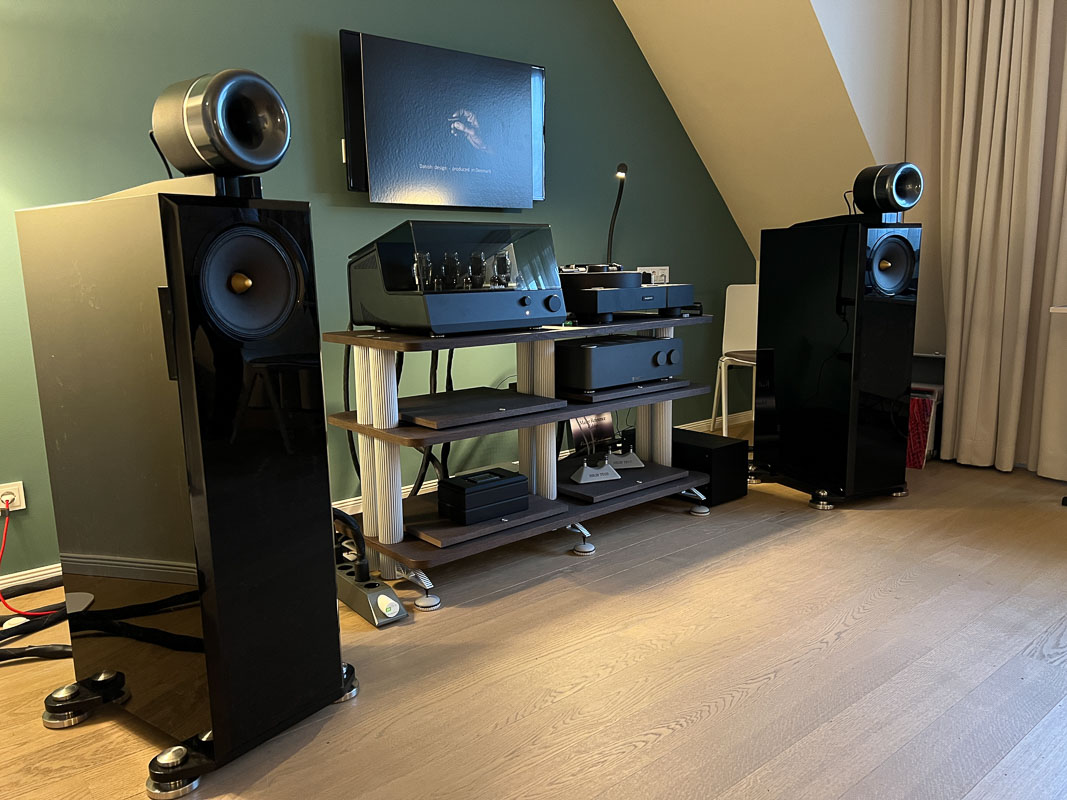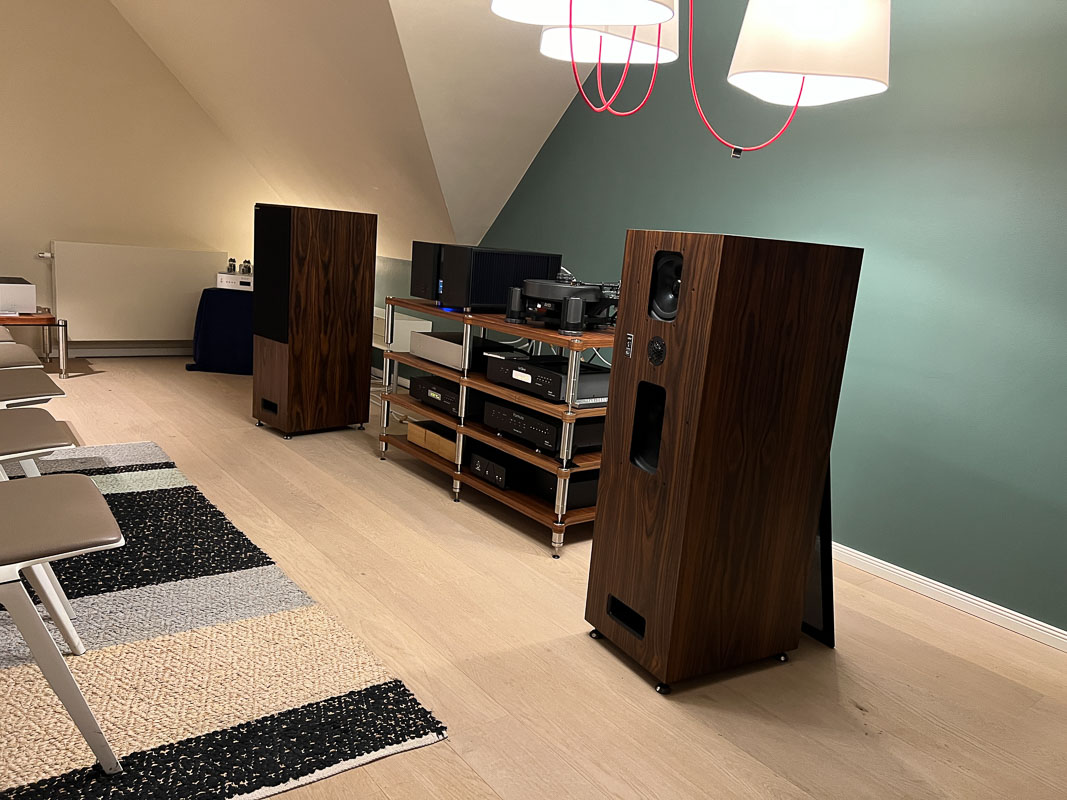 Nur eine Tür weiter gab’s ein echtes Superlativ zu bewundern und hören. Die Audio Group Denmark zeigte ihre 880er-Serie samt dem neuerdings auch lieferbaren Streaming-DAC SD-880. Das eigentliche Highlight dürfte für viele der Besucher aber die galante Standbox M3 gewesen sein, die sich nicht nur in ihrer vollen Pracht zeigte und zum Niederknien musizierte, sondern auch mehr als selbstbewusst mit dem zugehörigen Preisschild dekoriert war: 250.000 Euro – immerhin inklusive Mehrwertsteuer.