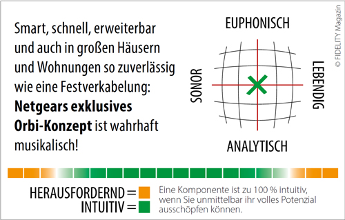 Knapp ein Jahr ist es her, dass mir Netgear eine Privataudienz gewährte, bei der ich den Fähigkeiten des neuen Orbi-Konzepts auf den Grund gehen konnte: Bei Plätzchen und Kaffee wurden mir Zahlen, beeindruckende Fakten sowie erleuchtende Aha-Momente um den Kopf gewickelt. Tatsächlich war ich im Vorfeld verwundert über die Einladung. Der Hersteller steht mit beiden Beinen in der IT-Welt und zählt zu den Marktführern in Sachen Netzwerktechnik – mit HiFi hat das erstmal nichts zu tun. Doch wie sich herausstellte, waren die Herrschaften auf der Suche nach Meinungen und Einschätzungen aus der Praxis – und da kam ihnen FIDELITY in den Sinn.