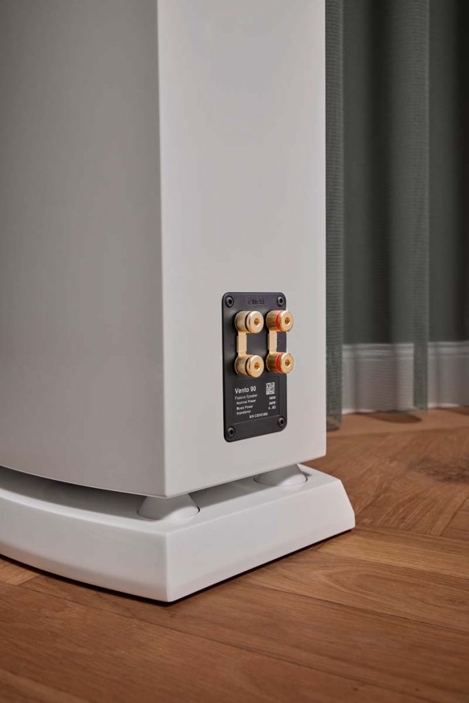 Die neue Vento Serie zeichnet sich optisch durch eine weiterentwickelte Grundform aus. Die neue Bugform wurde mit einem Verhältnis von einer 1 zu 1,2 Ratio gestaltet und hat dadurch an Gehäusevolumen gewonnen, welches mehr Bandbreite und Basspräzision ermöglicht. Zusätzlich hat der Sockel ein Designupdate erhalten und liefert dank klarer Linienverteilung eine markante „schwebende“ Optik. Die neue Serie ist in den edlen Farbvarianten in schwarz „high-gloss“ und weiß „high-gloss“ als Gehäuseausführung verfügbar.