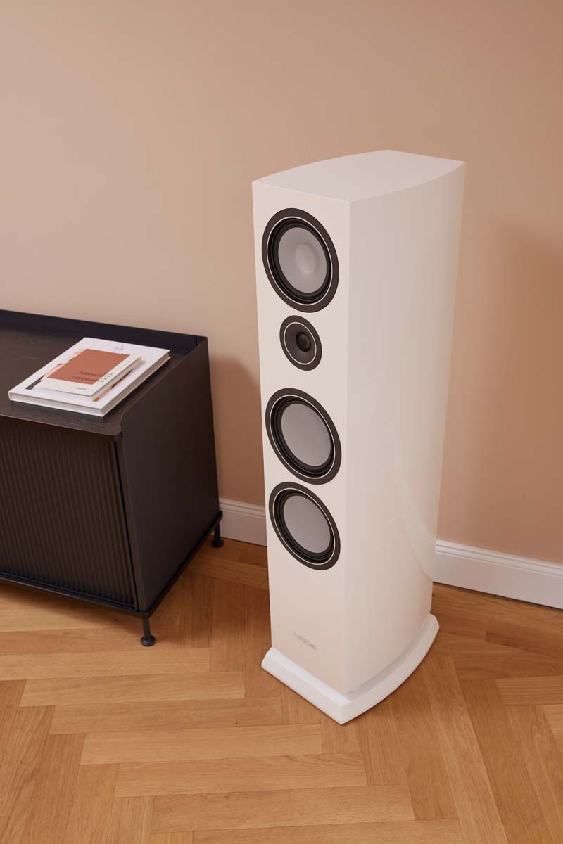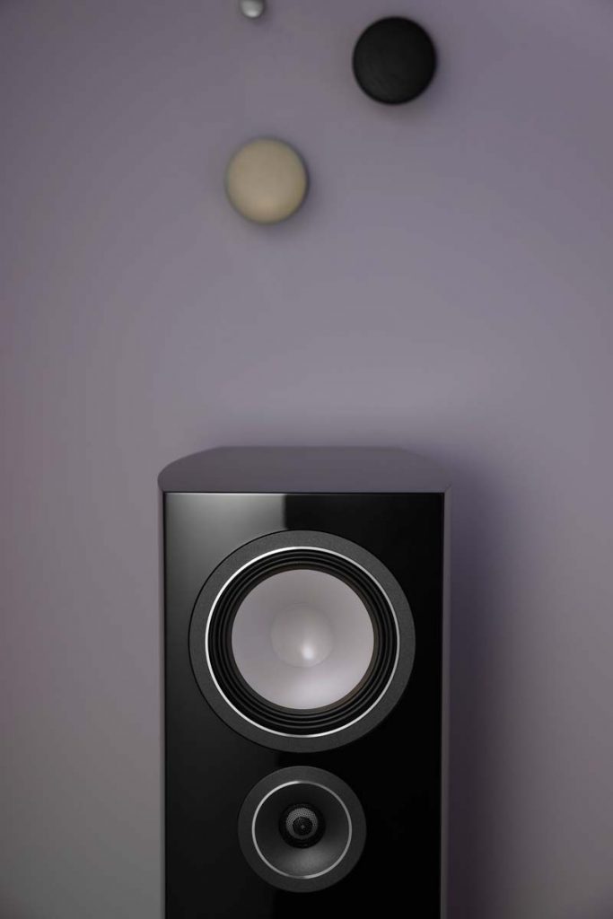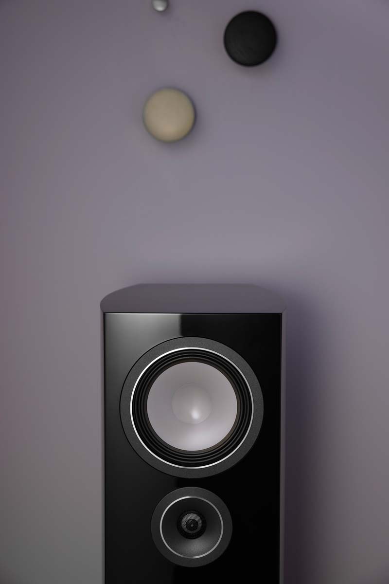 Die erstmalig eingesetzten Titanium-Graphit Chassis mit matter Struktur liefern in Kombination mit den schraubenlosen Diamond-Cut Aluminiumringen ein modernes Gesamtbild ab. Die optimierte Innenversteifung führt klangtechnisch zu minimierten Gehäuseresonanzen. Das neu entwickelte Anschlussterminal mit Feingewinde sorgt zudem für einen dauerstabilen Kontakt und eine verlustfreie Signalübertragung. Der neue Vento Subwoofer kommt ebenfalls in der geschwungenen Bugform und sorgt für höchste Bassdynamik.