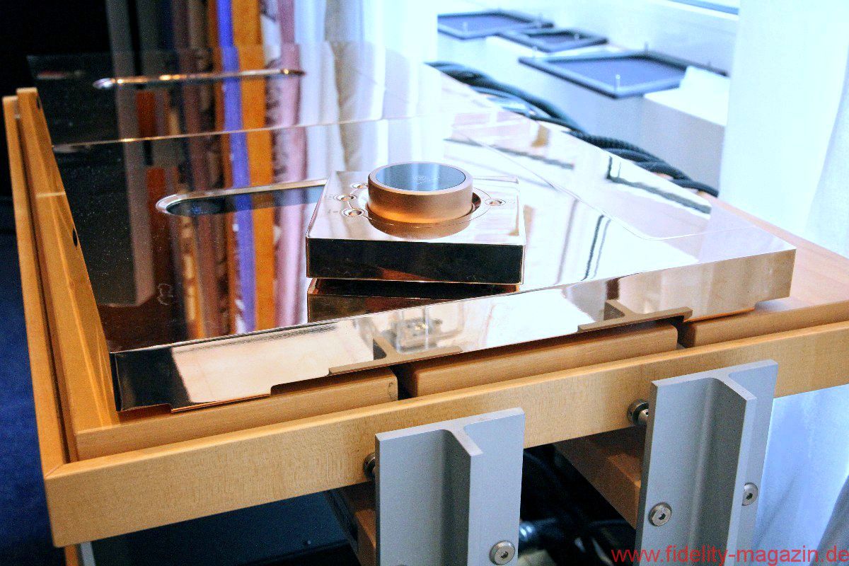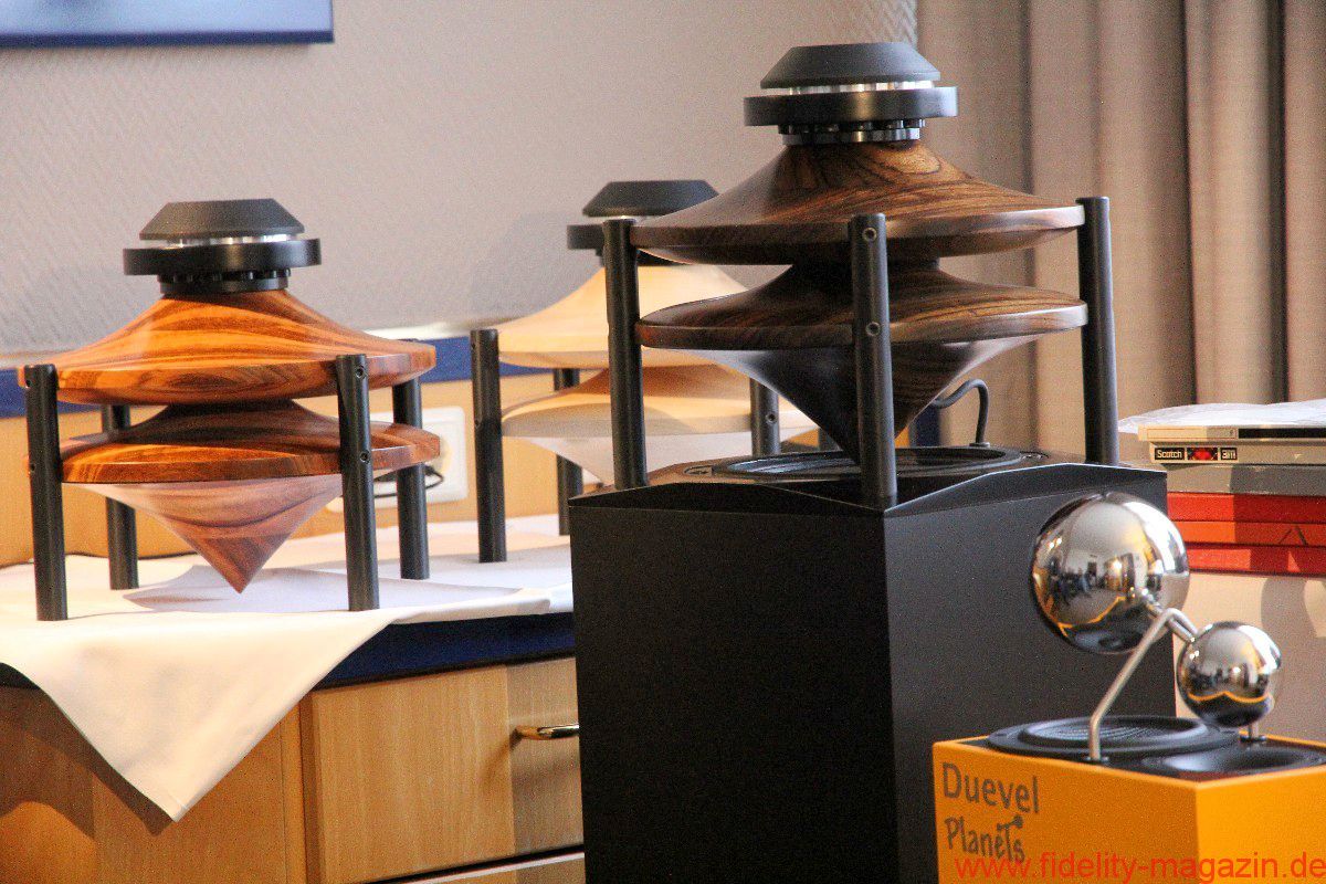So richtig raumfüllend erklang’s wie immer bei Duevel. Die größeren omnidirektionalen Hörner sind nun auch in Vollholz zu haben und spielten an einem Lyric Ti100, der übrigens häufiger auf der Messe zu sehen und zu hören war. Für die kleinen Planets, die regelmäßig für Verblüffung sorgen, stand eine 50/50 von MusicaNova bereit – großes Klangkino für kleines Geld. Bei Duevel stand auch in diesem Jahr wieder eine Bandmaschine als Quelle zur Verfügung, ebenso bei EternalArts, obwohl das Team um Dr. Burkhardt Schwäbe vor allem ein neues, enorm aufwändiges Netzteil für Plattenspieler präsentierte: Das TCM hat nichts mit einem bekannten Kaffeeröster, vielmehr mit einer OTL-Schaltung nach Futterman zu tun, abgerundet mit Nixie-Röhren für die Geschwindigkeitsanzeige. Witzig, exklusiv und mit 6500 Euro sportlich bepreist. Weitere Neuzugänge in der Analogszene zeigten beispielsweise AMG mit einem neuen Tonarm, Clearaudio mit einem leicht abgespeckten Laufwerk sowie Technics, die zwei Exemplare des komplett neu überarbeiteten Modells SL-1200 GAE Limited Edition aus Las Vegas eingeflogen hatten und die Seriennummer „0000“ (von – achwas! – 1200 Stück) auch demonstrierten. Noch immer steht der Preis für die tiefergelegte und schwer getunte Variante nicht endgültig fest, soll sich aber noch diesseits von 4000 Euro einpendeln. Eine unlimitierte Version für Normal-DJs und Japanfans wird natürlich preisgünstiger, aber auch erst noch später im Jahr zu haben sein.