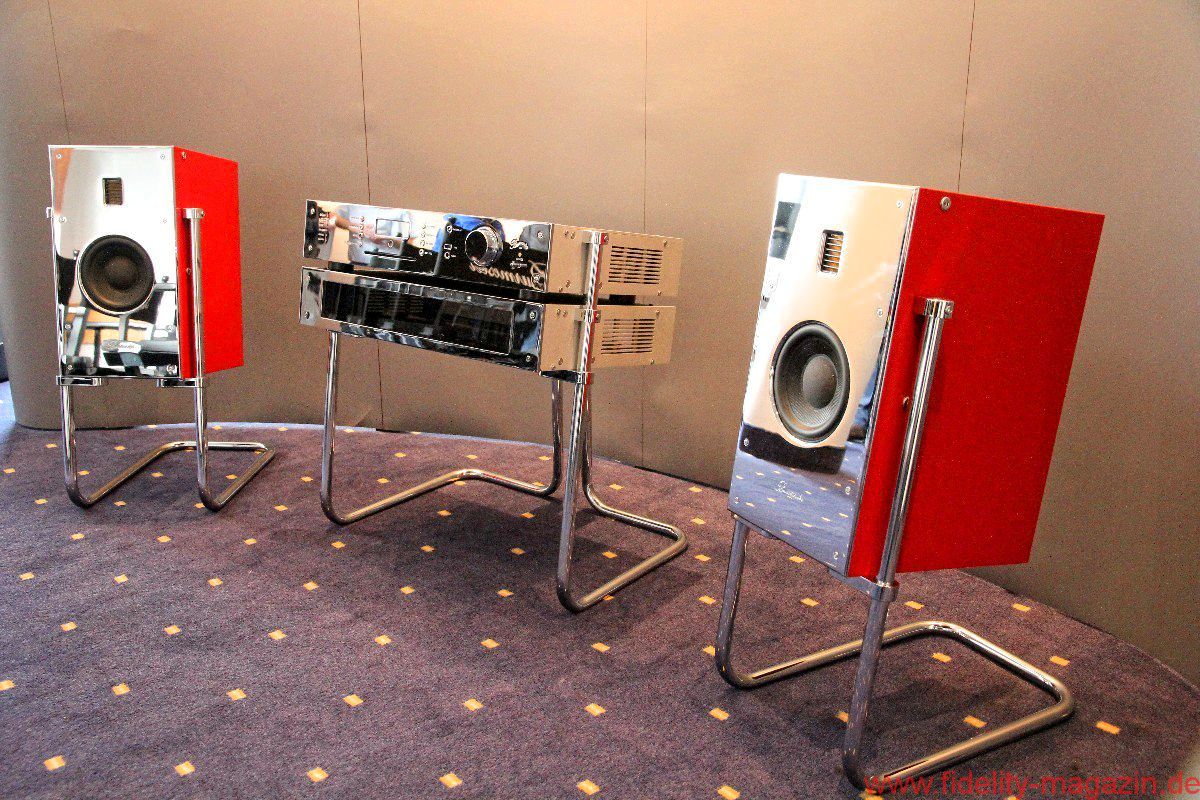 Zugespitzt klang’s bei Zugspitz, deren Monster-Röhren (made by Silvercore) an den Big-Boy-Boxen in Baumstamm-Optik kräftig Spaß machten, aber auch feine Töne beherrschten. Krasses Gegenteil in puncto Optik: Burmester Phase 3 – wir warten noch immer, und zwar gerne, auf den Serienstart der Komplettanlage. Erstaunlich raumfüllend erklangen Larsen 6 am Pioneer A30PH (tuned by Phonosophie) und Audiobyte-DAC bei Tom Habke. Grandiose Performance am AudioQuest Nighthawk: Dave von Chord Electronics, ein Super-DAC mit dezent-opulenter Rolex-Optik, quasi der ganz große Bruder vom kleinen Mojo.