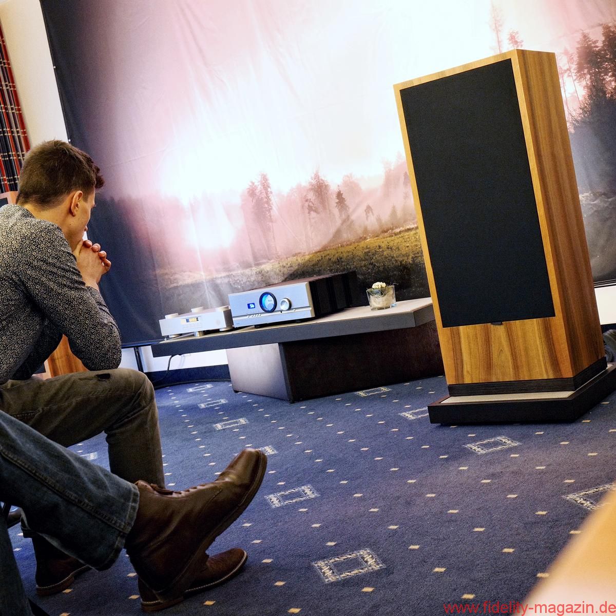 Ein Wort noch zum klanglichen Niveau der Messe. Das war im Allgemeinen, vor allem im Rahmen der Möglichkeiten eines Hotels durchaus respektabel. Wirklich herausragend guten Klang boten allerdings nur wenige Vorführungen. Uns ist in dieser Disziplin vor allem B&W mit der großen 800er positiv aufgefallen. Aber auch das aktive Grimm-Schallwandlersystem mit Trinnov-Ansteuerung konnte begeistern. In der Kompaktliga gefiel uns die aktive KEF LS 50 (mit DJ Johan Coorg) außerordentlich gut, bei den passiven „Boxen“ konnte uns Boenicke an Elektronik von CAD und Ypsilon nachhaltig beeindrucken. Mehr dazu im zweiten Teil dieses Messeberichts, der schon bald an dieser Stelle erscheinen wird.