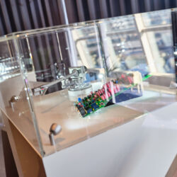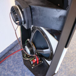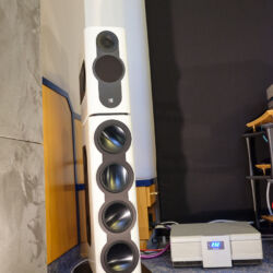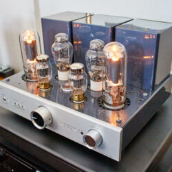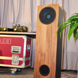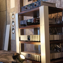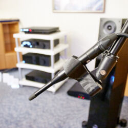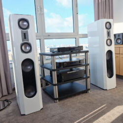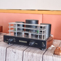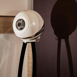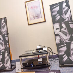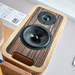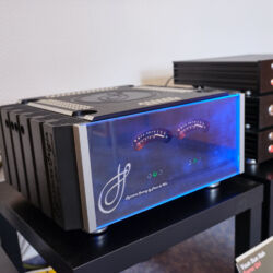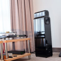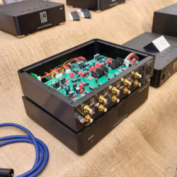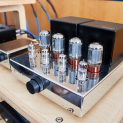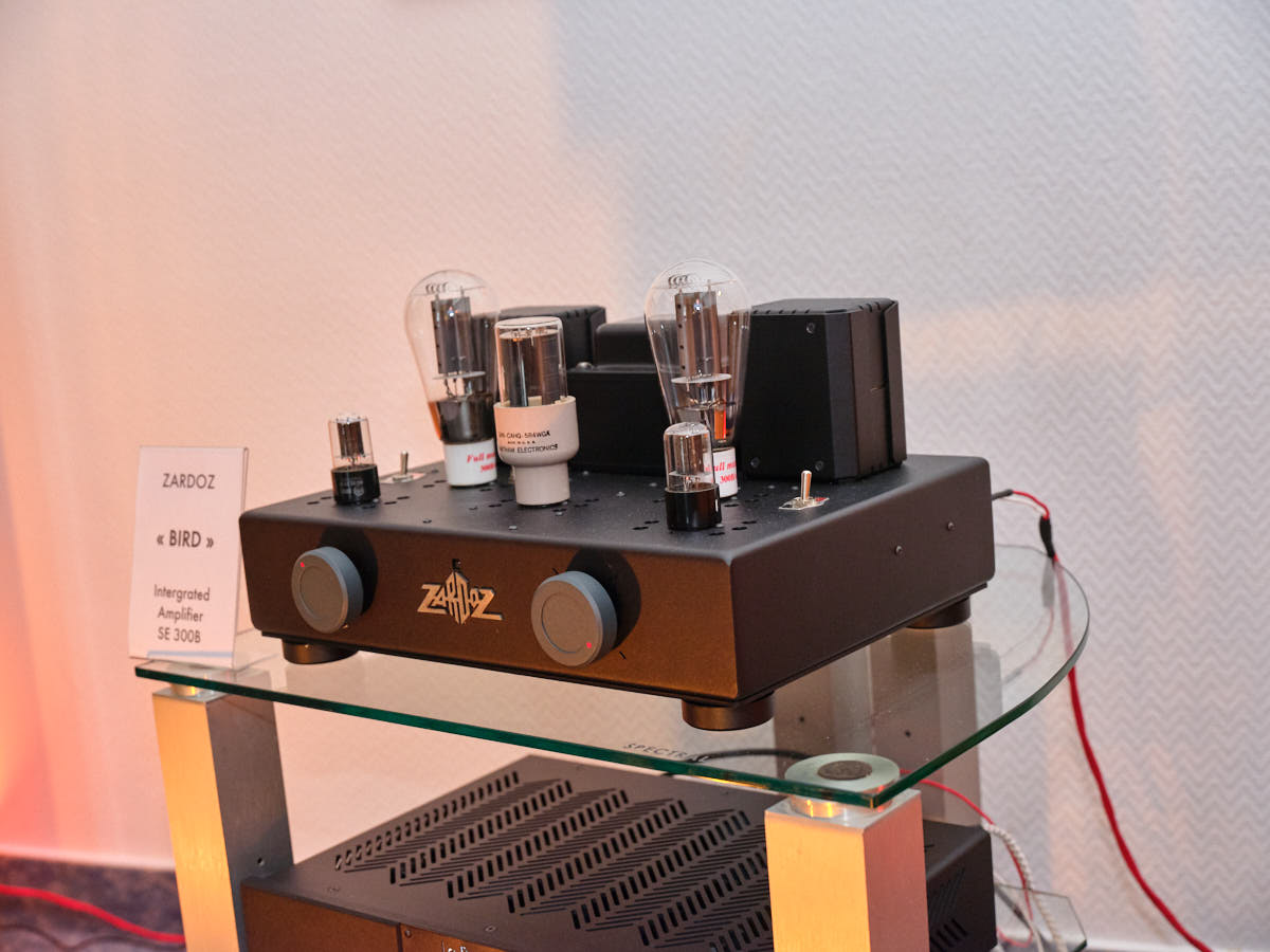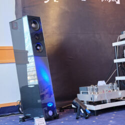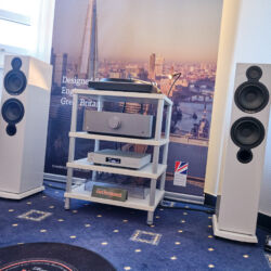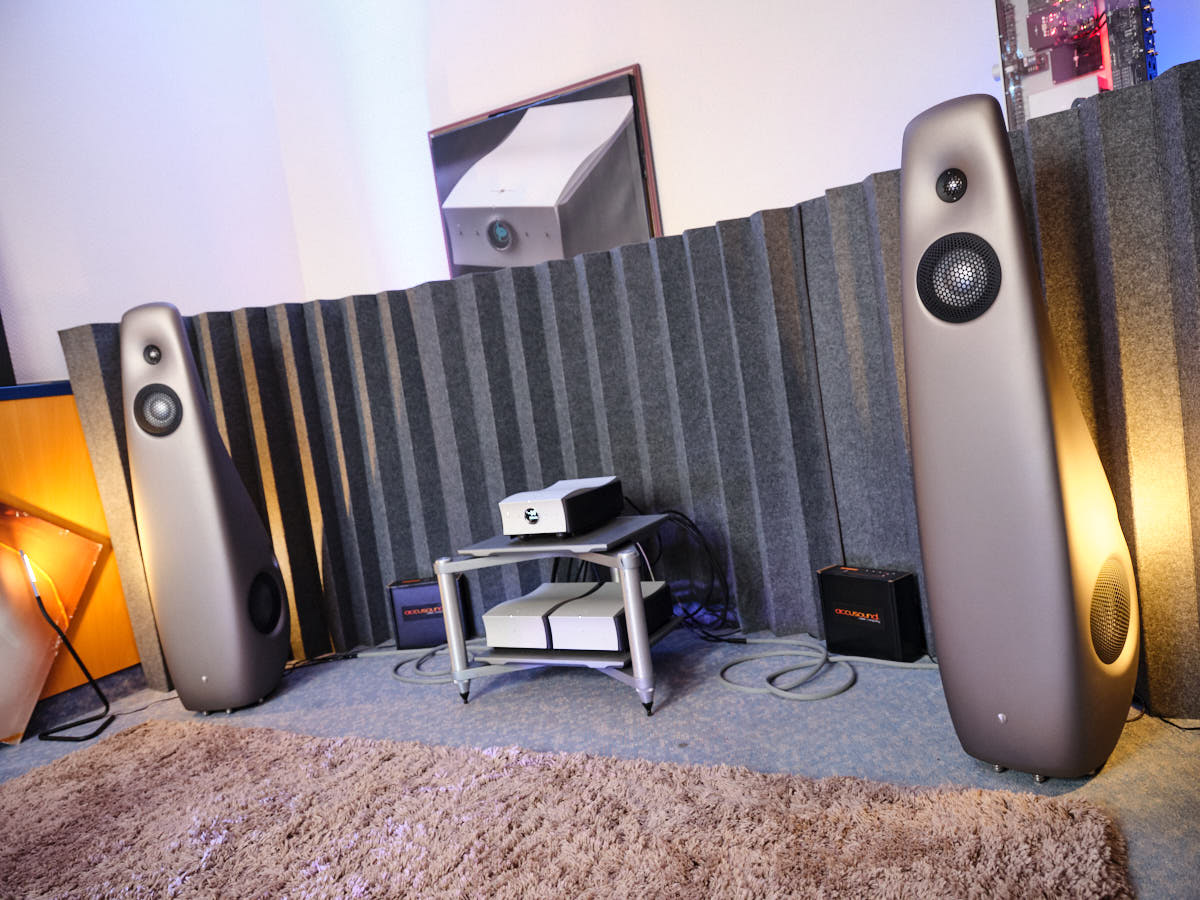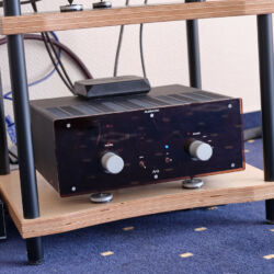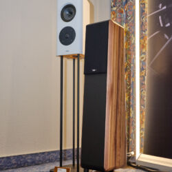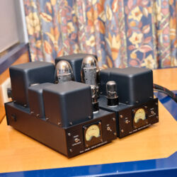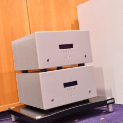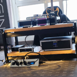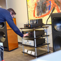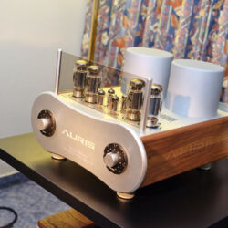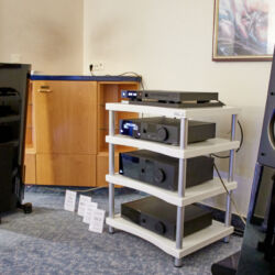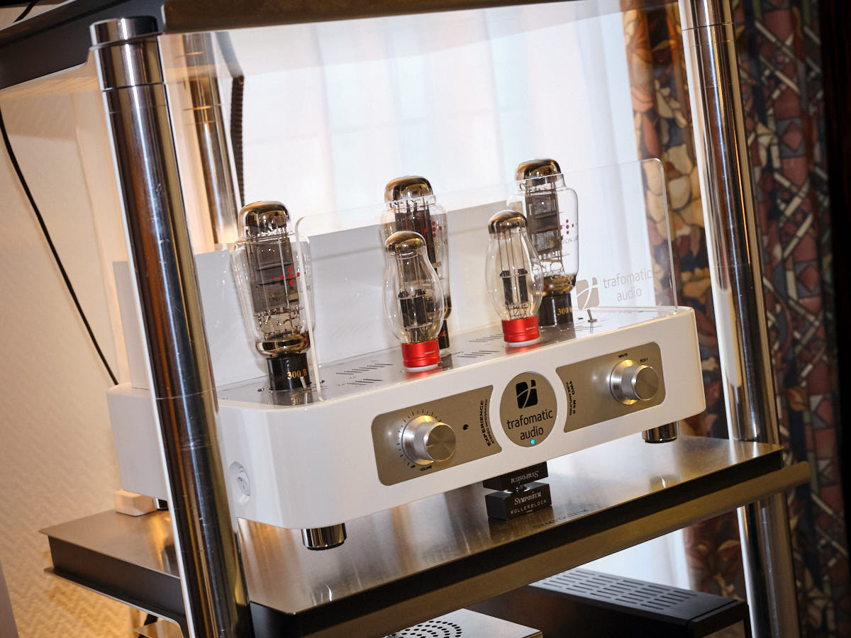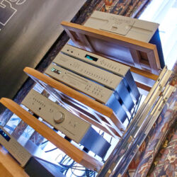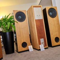 „Sich einfach treiben lassen“ … daran muss ich im Nachhinein immer wieder denken und bin zugegebenermaßen etwas neidisch auf die beiden Herren. Kaum oben angekommen stürzte ich mich auf die ersten beiden Gänge und führte eilige Gespräche mit den Ausstellern. DALI, Mudra sowie Fischer&Fischer, hORNS, Cambridge Audio, Elac, Quadral, Scheu, Dr. Feickert, Manger, Esoteric, Input Audio und viele mehr fand ich auf den drei obersten Etagen des Wohnturms. Hören konnte ich hier und dort auch etwas. Besonders blieb mir die exquisite Vorführung bei Einstein im Gedächtnis – und das nicht nur wegen der prominent hinter dem Rack platzierten bildschönen Fender Telecaster. Ebenfalls zum Verweilen lud die gewohnt professionell moderierte Präsentation von Eternal Arts. Hier gab es die klangvollen Röhrenmonos OTL Mono-Bloc an Lautsprechern von Live Act Audio.