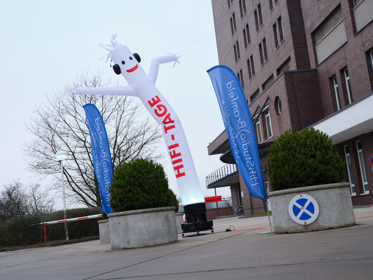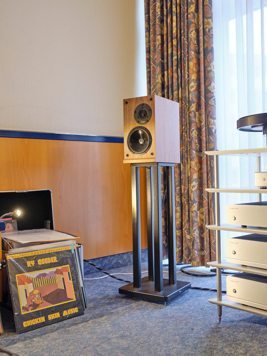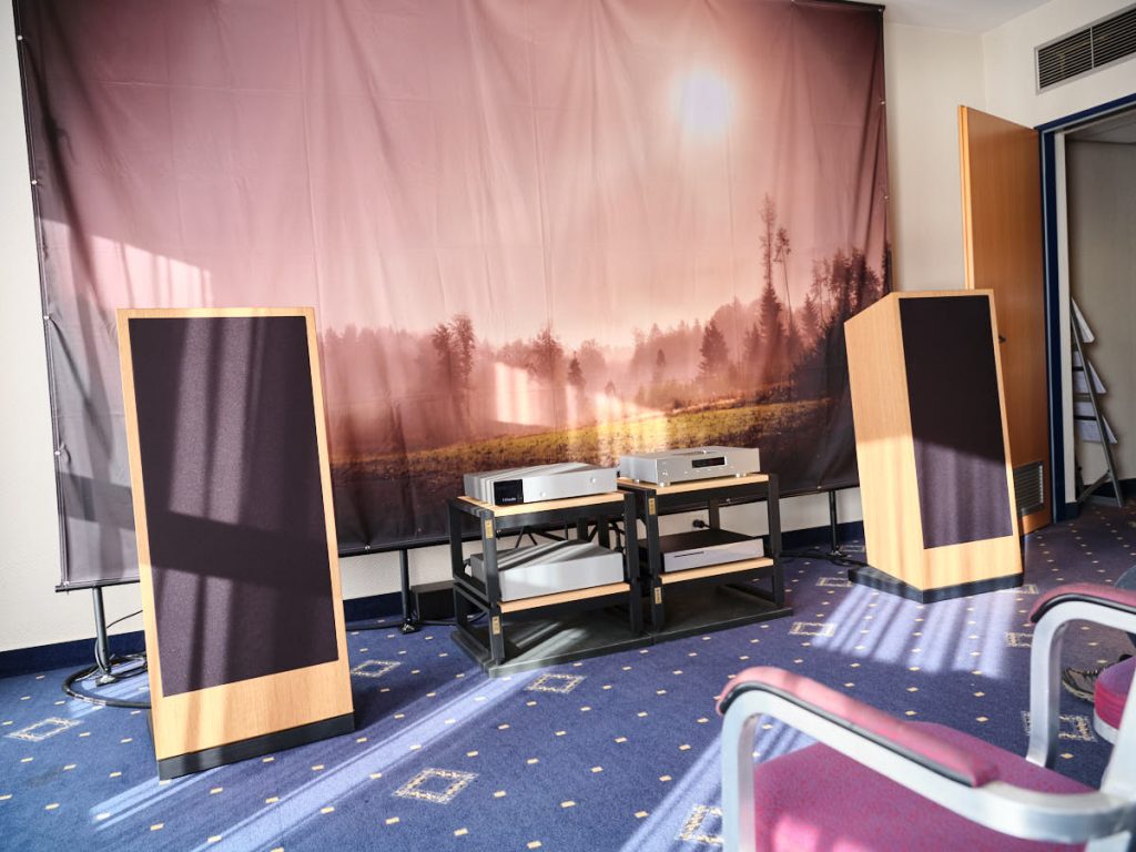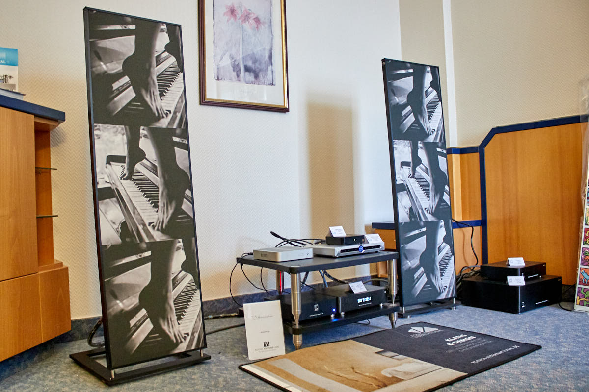 Das haben wir natürlich gern getan, und kamen so auf den Gedanken, einen Teil unserer Verkaufserlösee an die Aktion abzuführen. Für das eingespielte Veranstalter-Team stelle unsere Last Minute-Teilnahmee keine Herausforderung dar. Ivonne Borchert-Lima, die seit einigen Jahren die Geschicke des väterlichen Unternehmens leitet und die Norddeutschen sowie Süddeutschen HiFi-Tage organisiert, ist mittlerweile ein Vollprofi. Sie verpasste uns eine Stellfläche direkt am Haupteingang des Hotels.