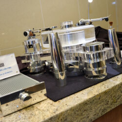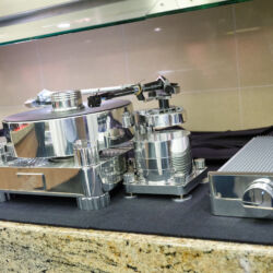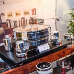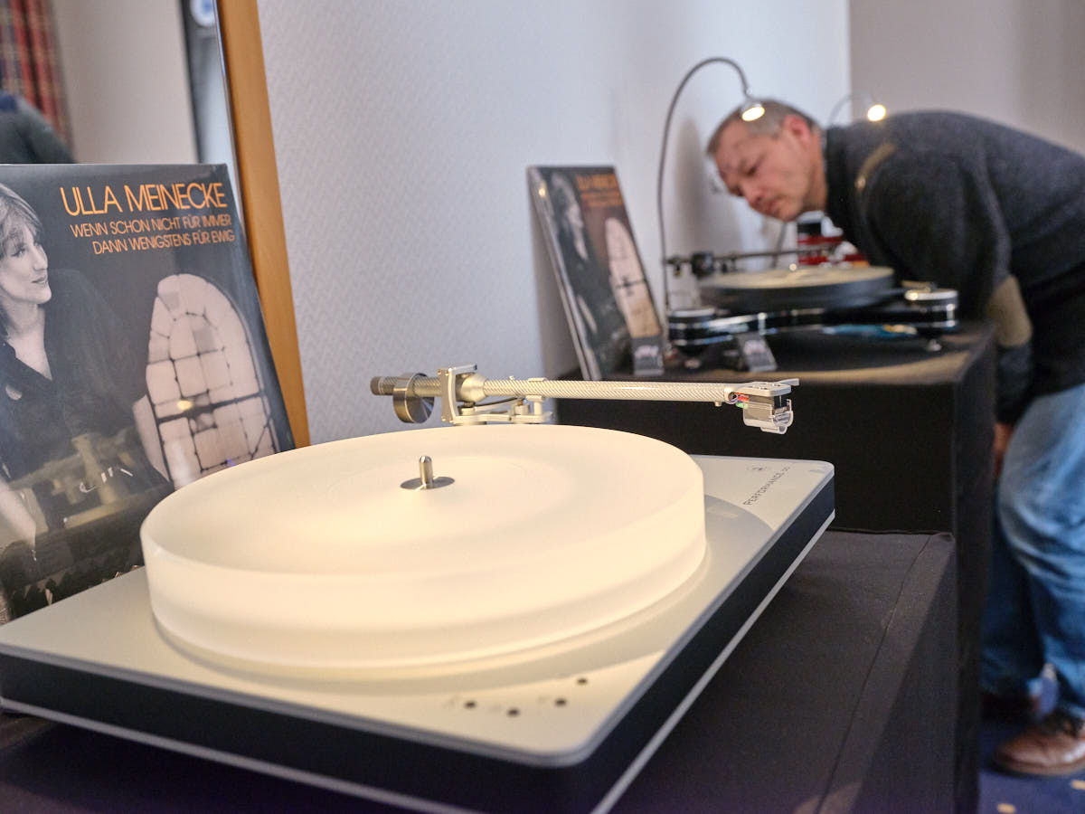 Am anderen Ende der Bandbreite greift der Analogboom immer weiter um sich. Plattenspieler konnte man an praktisch jedem (!) Stand entdecken. Analoge Vollsortimentler wie Transrotor nutzen die Gelegenheit natürlich für eine umfassende Werksausstellung. Am Stand von Clearaudio musste man derweil gar nicht lange suchen, um eine weitere exklusive Neuheit zu erspähen: