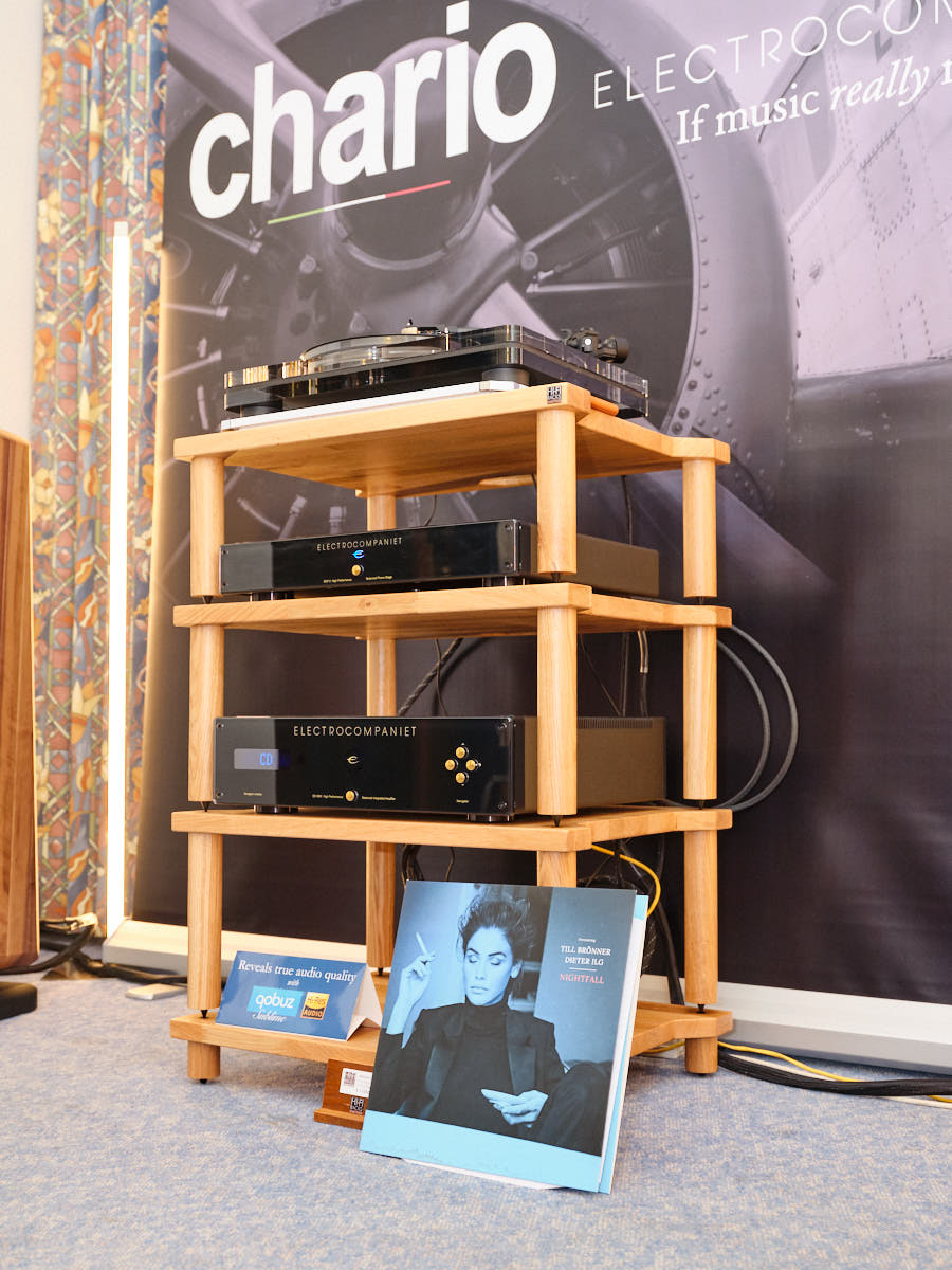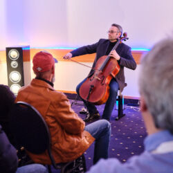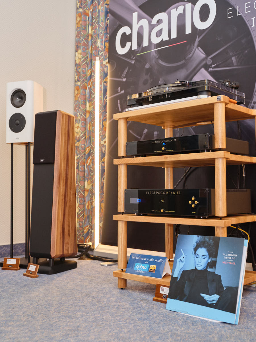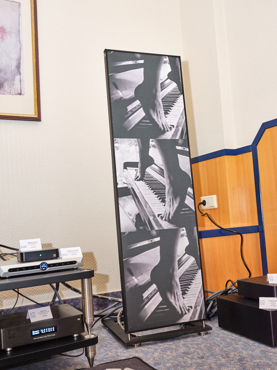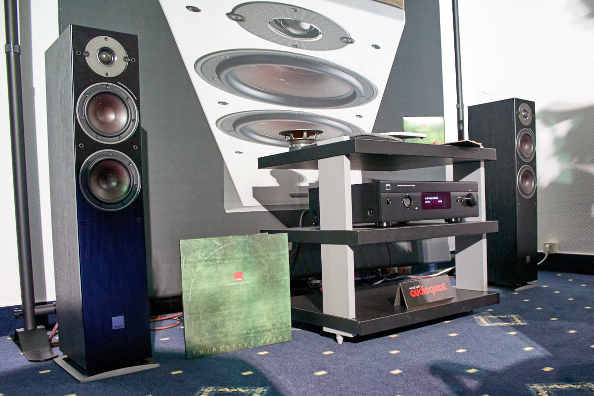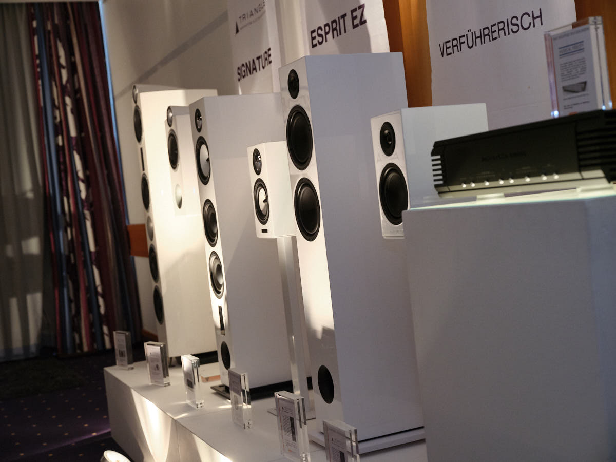 Der erste Besucherstrom verschwanden zielstrebig in die Vorführräume der großen Säle des ersten und zweiten Stockwerks. Hier gastierten neben B&W Marken wie Musical Fidelity, Triangle, Burmester, FinkTeam, IsoTek, Audio Physic und X-Odos, T+A oder Naim und Focal und natürlich Dynaudio. Wer als Aussteller einmal einen dieser exklusiven Räume ergattert hat, hält daran fest und so wissen die Wiederholungstäter unter den Besuchern ganz genau, welche Vorführungen sich besonders lohnen. Die Hörqualität in den großen Salons war durchweg gut bis exzellent. Eine ganz besondere Performance hatten sich Canton und Phonosophie einfallen lassen: In ihrem Gemeinschaftsraum gab es abwechselnd Cello-Livekonzerte gefolgt von hervorragender Retortenmusik.