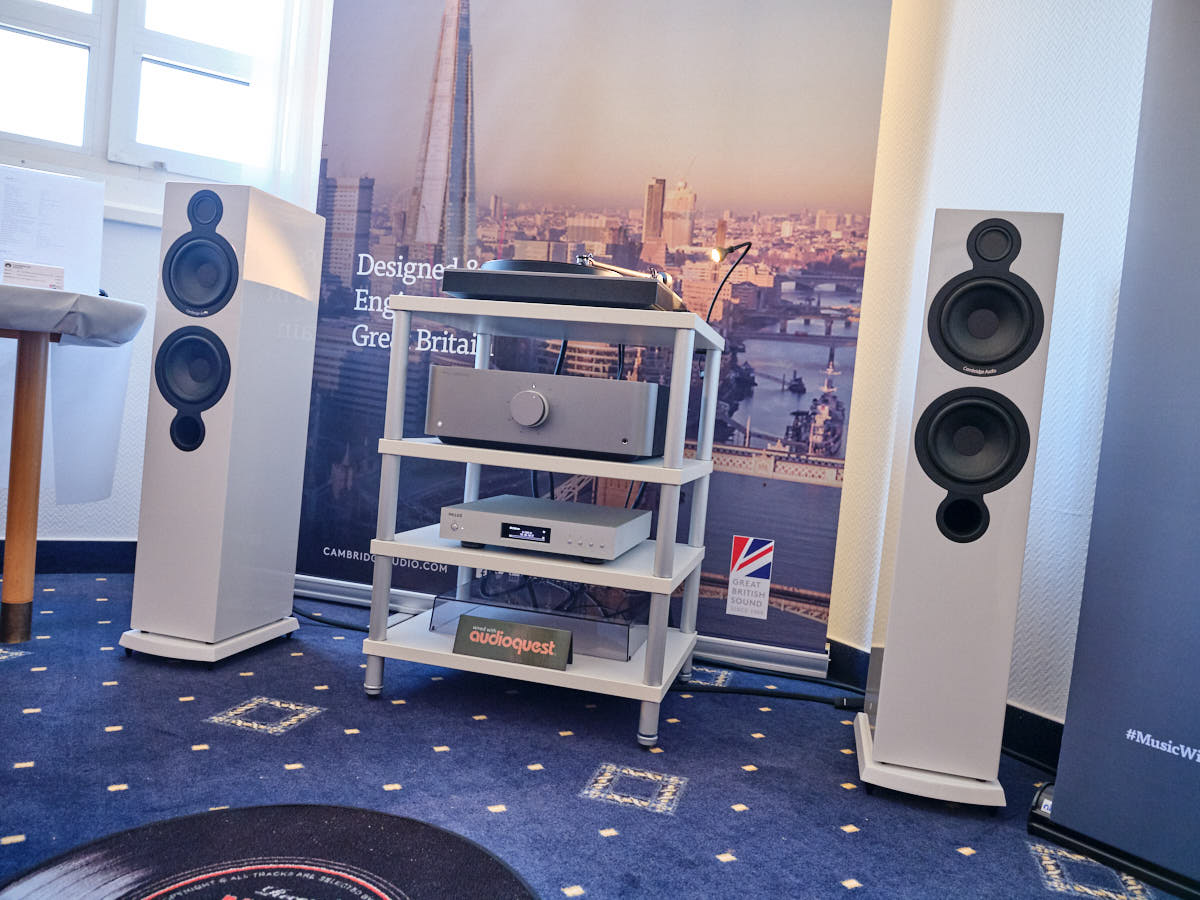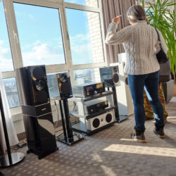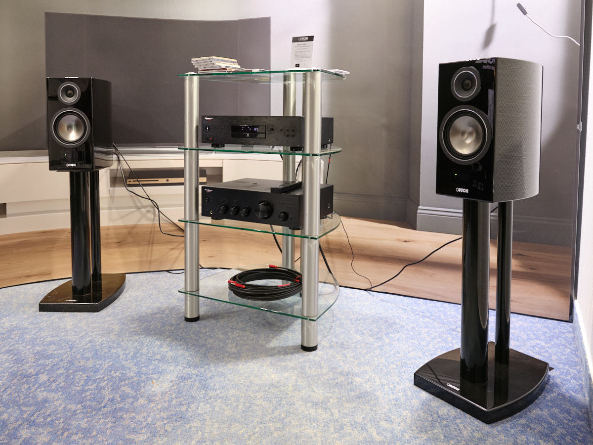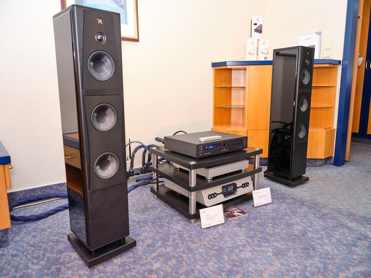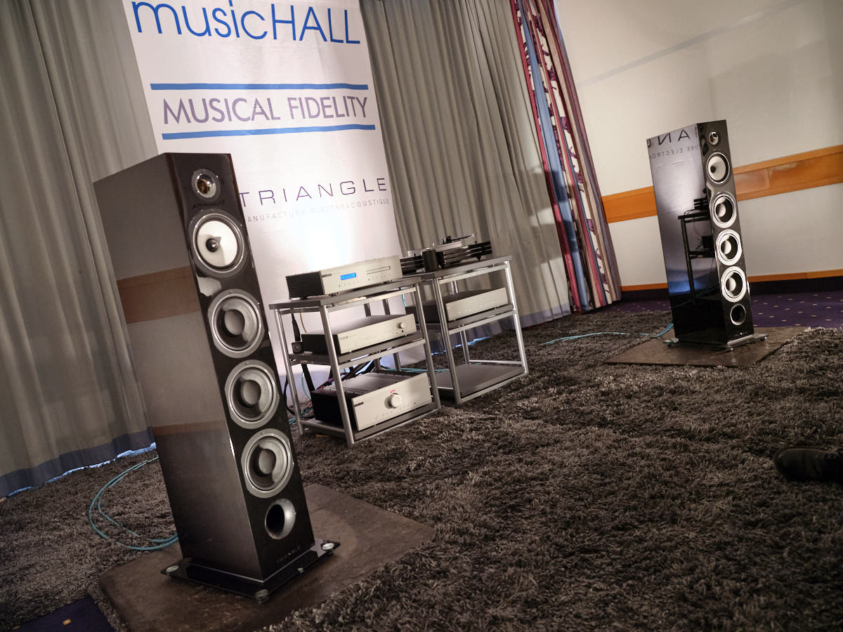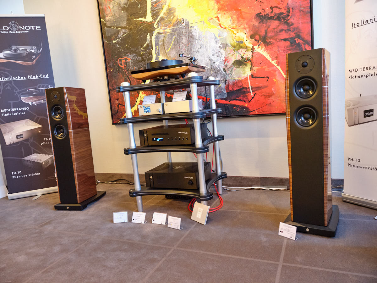 Der erste Besucherstrom verschwanden zielstrebig in die Vorführräume der großen Säle des ersten und zweiten Stockwerks. Hier gastierten neben B&W Marken wie Musical Fidelity, Triangle, Burmester, FinkTeam, IsoTek, Audio Physic und X-Odos, T+A oder Naim und Focal und natürlich Dynaudio. Wer als Aussteller einmal einen dieser exklusiven Räume ergattert hat, hält daran fest und so wissen die Wiederholungstäter unter den Besuchern ganz genau, welche Vorführungen sich besonders lohnen. Die Hörqualität in den großen Salons war durchweg gut bis exzellent. Eine ganz besondere Performance hatten sich Canton und Phonosophie einfallen lassen: In ihrem Gemeinschaftsraum gab es abwechselnd Cello-Livekonzerte gefolgt von hervorragender Retortenmusik.