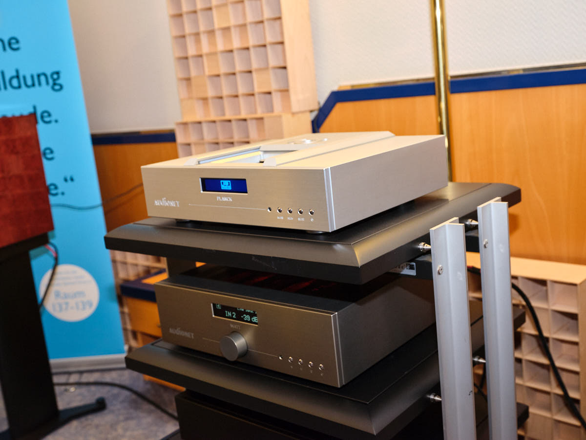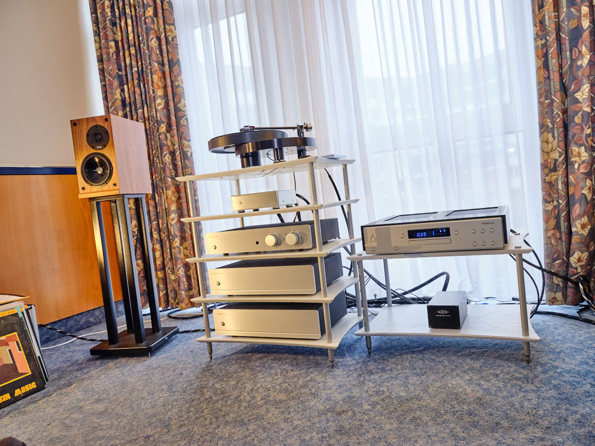 Mein erster Weg führte allerdings bereits eine halbe Stunde vor Eröffnung in den Ausstellungsraum von AVM. Dort verkündete Geschäftsführer Udo Besser einer kleinen Gruppe von Journalisten Details und Fakten zum neuen Ovation-Amp – eine Weltpremiere. Das neue Verstärker-Flaggschiff der Malscher besitzt neben unerhörter Konnektivität einen D/A-Wandler und ist mit Transistor- (A 6.3) oder Röhren-Ausgangsstufe (A 8.3) zu haben. Es spricht für die Bedeutung der NDHT, dass sie mittlerweile auch für exklusive Produktvorstellungen genutzt werden. Ähnlich sah es bei Accustic Arts aus, wo wir neue Prototypen eines Verstärkers und CD-Spielers sehen konnten oder am Stand von Technics, wo erstmals der neue „Einsteiger-Dreher“ SL1200 MK7 gezeigt und vorgeführt wurde.
