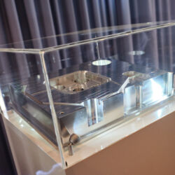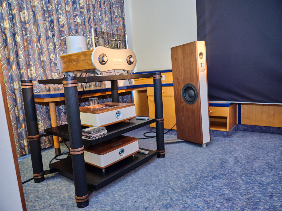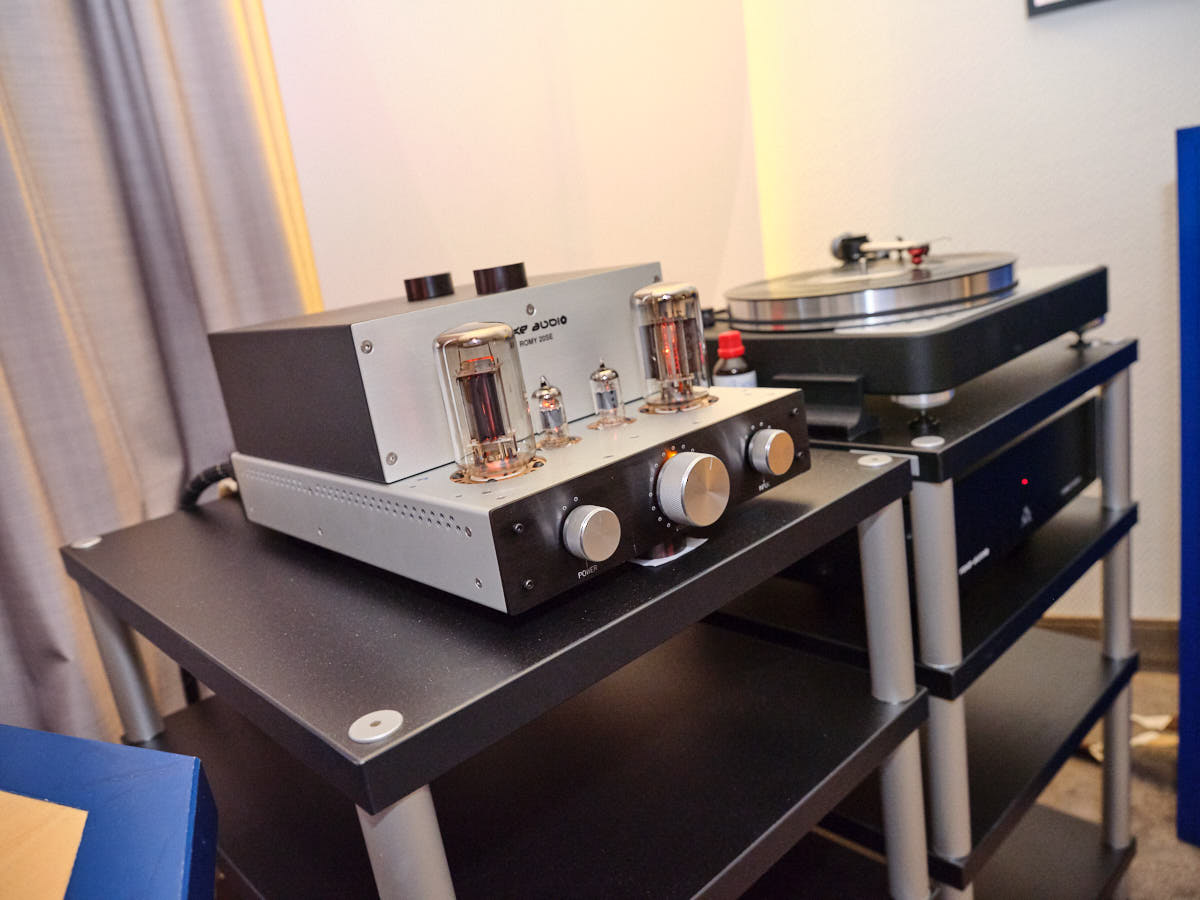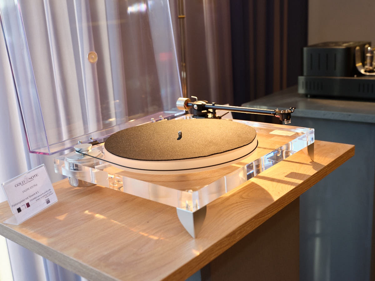 Mitten in der Vorführkette stand der neue Concept Active, ein genialer All-In-One-Dreher, der neben dem eigenen Entzerrer gleich noch eine integrierte Vorstufe mitbringt. Thorens zeigte derweil die bereits im Herbst vorgestellten Einsteigermodelle und erzählte uns von spannenden Dingen, die bald kommen werden. Auch das Zubehör bekam seine Chance. In einem Flur präsentierte MHW Audio so ziemlich jede Plattenwaschmaschine, die jemals konstruiert wurde, darunter auch die neue Ultraschalldusche Degritter.