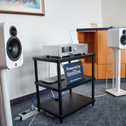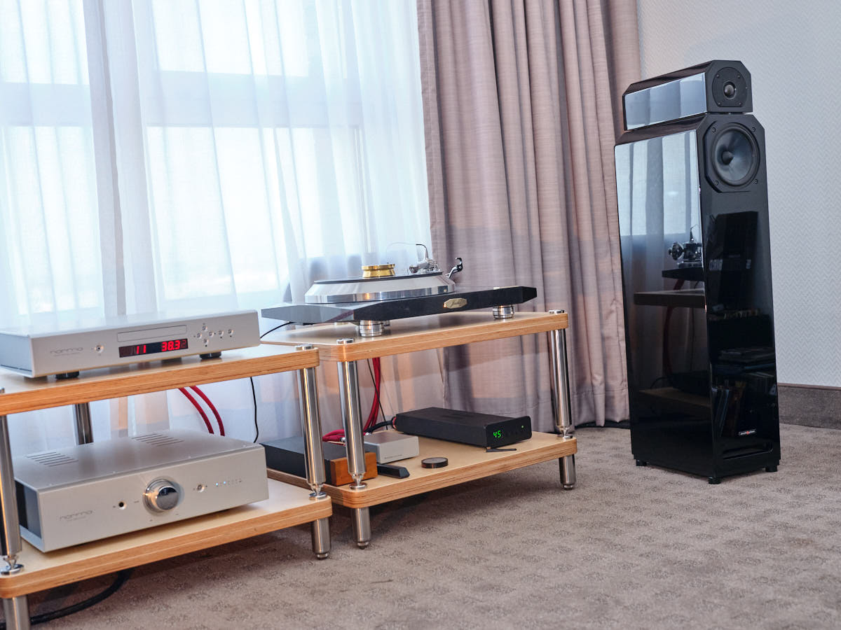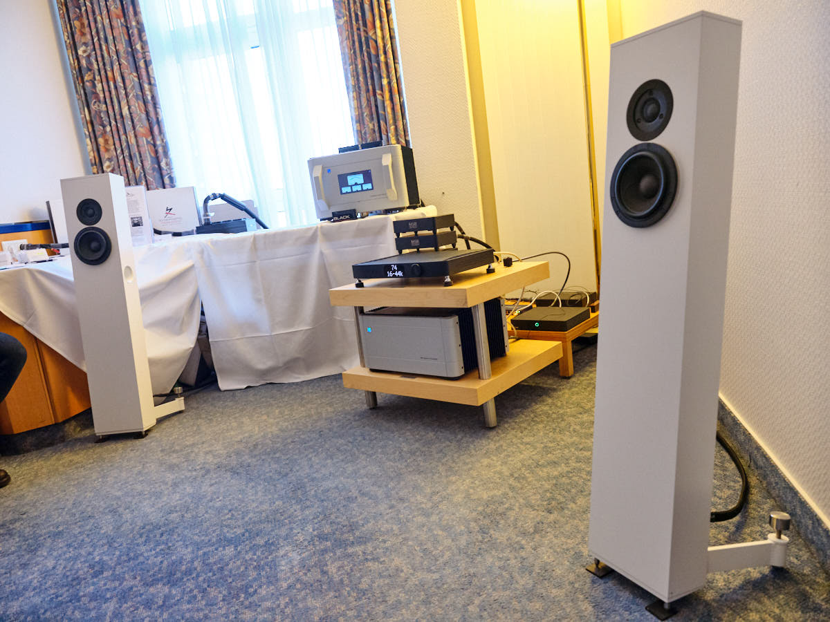 Trotzdem verschaffte der Schnelldurchlauf einen guten Überblick zu den aktuellen Trends und Themen. So scheinen sich Aktivlautsprecher aller Formen, Größen und Ausführungen zum echten Brenner zu mausern: Kef war mit seiner LS50 Wireless und der neuen kompakten LSX vor Ort, Cabasse präsentierte die schnurlose Quasi-Komplettanlage “The Pearl”, der dänische Hersteller JERN präsentierte seine ultrarobusten (und sehr spannenden) Vollmetallschönheiten und am oberen Ende zeigte zum Beispiel Lyravox seine Aktiv-Kreationen, die man wohl eher als All-In-One-Anlage bezeichnen sollte. Auch Dynamikks! war da. Angesprochen auf den Röhrenverstärker in seiner Vorführung erklärte mir Inhaber und Entwickler Ulf Moning „Ach, ich dachte kurz vor der Messe, ich müsste mal was mit Röhre machen, also habe ich den hier gemacht.“ Schöner kann man es wohl nicht auf den Punkt bringen. Wir sollte auch nicht vergessen, dass auch Quadral und Elac im Wohnturm des Holiday Inn ihre neusten Aktiv-Kreationen zeigten.