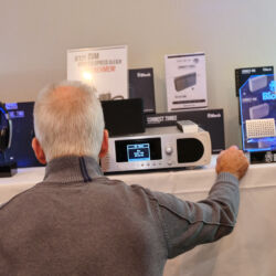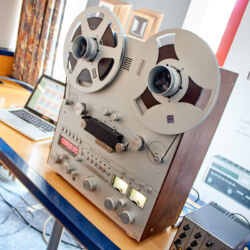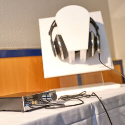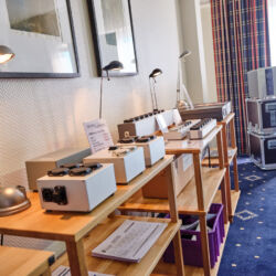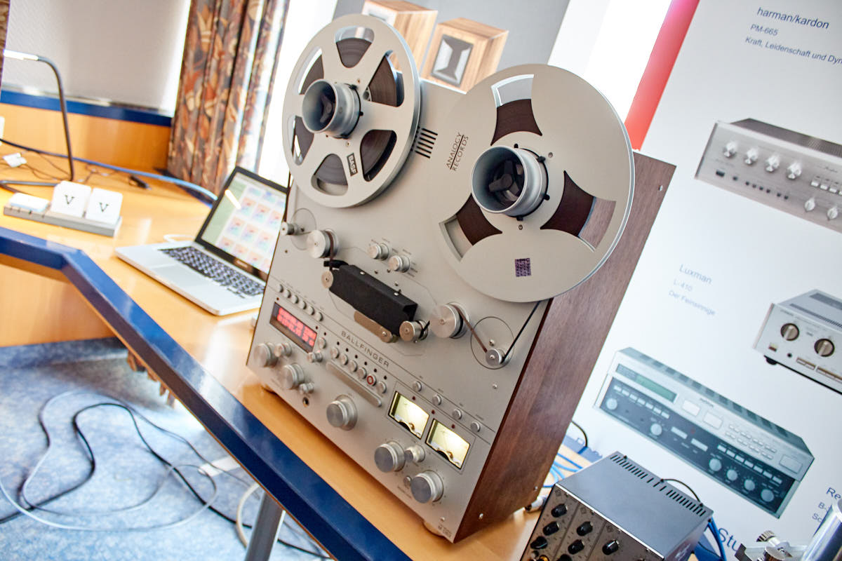 Direkt im Anschluss an die kurze Pressekonferenz ging es zu den Warteschlange an den Aufzügen, die etwa 20 Minuten beanspruchten. Immerhin: Man lernt hier schnell Leute kennen und tatsächlich kam ich mit zwei Besuchern ins Gespräch, denen ich unsere Fragen vom Vortag stellen konnte: Warum seid ihr hier, was interessiert euch am meisten und was macht den Reiz solcher Hotelmessen aus? “Der Spaß an den vielen, oft leidenschaftlichen Vorführungen und die Möglichkeit, eigenes Material zu hören”. Hier und dort, so zeige ihre Erfahrung, kann man sich auch mal einen Titel wünschen. Ob es einen Hersteller gebe, der sie besonders interessiere, wollte ich wissen. „Nö, ganz bestimmt nicht!“ – Die Antwort kann spontan und offenbarte norddeutsche Direktheit. Sie wollten sich einfach treiben lassen, seien ohnehin Stammgäste auf den NDHT und wüssten, dass man am Samstag unmöglich alles sehen kann. Insbesondere analoge Vorführungen hätten es ihnen angetan, neben Plattenspielern würden Sie sich freuen, auch mal eine Bandmaschine zu hören. Sowas erlebt man eben nicht alle Tage und da blieben sie dann auch schonmal etwas länger sitzen.