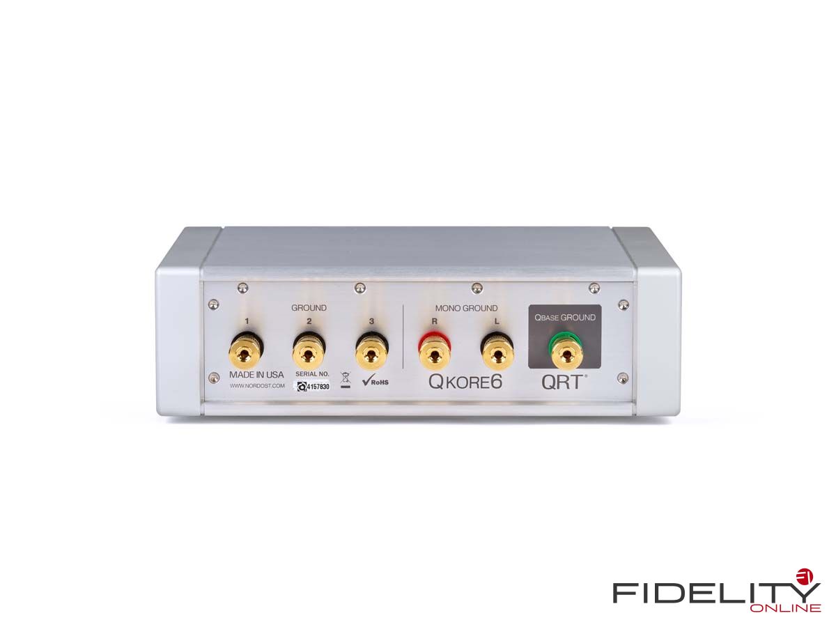 Die Netzleiste mit ihren Gummifüßen, die in einer weiteren Ausbaustufe gegen reversierte Standkegel ausgetauscht werden können, ist gleichwohl nur der erste Schritt. Denn Nordost geht deutlich weiter und gesellt der QBase den QKore hinzu, um die Erdungsmaßnahmen perfekt zu machen.