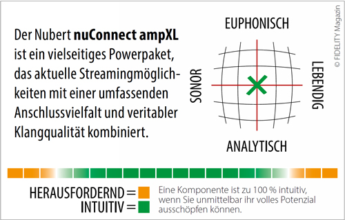 Sie wünschen ein Fazit? Nun denn, schließlich gehört dieser handliche Vollverstärker zu den Geräten, bei denen dies leichtfällt: Der Nubert nuConnect ampXL ist ein vielseitiges Powerpaket, das aktuelle Streamingmöglichkeiten mit einer umfassenden Anschlussvielfalt und veritabler Klangqualität kombiniert. Oder um es mit dem Titel eines Filmklassikers zu sagen: Kleiner Mann – ganz groß. Schaut man dabei auf das Preisschild, so muss man sich tatsächlich fragen, wie man das im Hause Nubert so hinbekommt. Aber wir wissen ja, dass das Schwabenland historisch schon immer für ein wundersames finanzielles Händchen bekannt war und ist. Und im Falle Nubert muss man als Kunde einfach sagen: Und das ist auch gut so!
