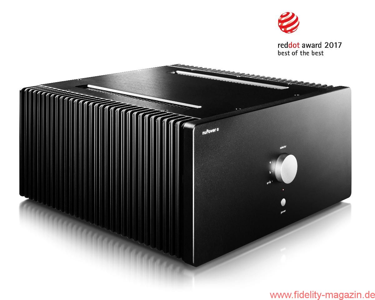 Der Red Dot Award: Product Design wird jährlich vom Design Zentrum Nordrhein Westfalen e.V. ausgeschrieben und von einer international hochkarätig besetzten rund 40-köpfigen Jury in 47 Kategorien vergeben. Mit der Auszeichnung „Best of the Best“ in der Sparte Unterhaltungselektronik/Audio beweist der nuPower A nun nicht nur, dass er sich in Innovationsgrad, formaler Qualität, Funktionalität und Ergonomie – um einige der Bewertungskriterien zu nennen – von vergleichbaren Produkten auf dem Markt abhebt. Vielmehr würdigt diese höchste Auszeichnung nur die besten Produkte einer Sparte für ihre „wegweisende Gestaltung“. Für diese verantwortlich zeichnet das Nubert-Projektteam: Roland Spiegler von der Geschäftsleitung, Projektleiter Markus Pedal und Produktionsleiter Miro Micklitz. Sie haben die ebenfalls mit einem Red Dot prämierte Formensprache von nuControl und nuPower D, die zusammen mit dem verstorbenen Produktdesigner Andreas Utz entworfen wurde, für den nuPower A auf die zwei zentralen Power- und Selector-Bedienelemente auf der massiven Frontplatte reduziert. Die markanten Kühlrippen an den Gehäuseflanken visualisieren zudem ausdrucksvoll, mit wie viel Kraft der Verstärker Klänge von höchster Reinheit reproduziert.