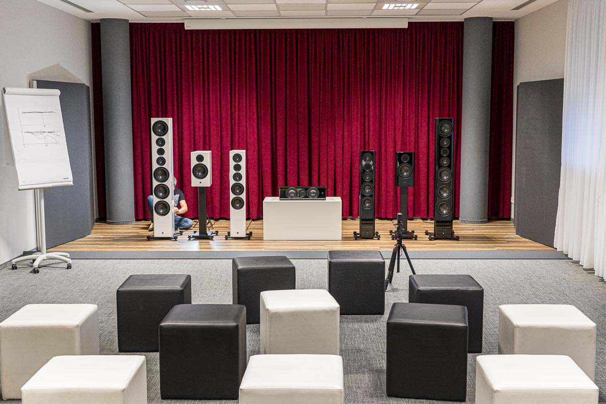 Und genau hier setzten die Neuvorstellungen an: Entwicklungsleiter Markus Pedal begrüßte uns eloquent und zeigte ohne großen Umschweif die neue „nuZeo“-Serie – insgesamt vier Aktive, die die neue Top-Line der Schwaben darstellen und die explizit für das Zusammenspiel mit der DSP-Vorstufe nuControl X entworfen wurden (aber selbstredend auch allein oder mit anderen Control X-Zuspielern funktionieren). Und wundern Sie sich bitte nicht über die Anführungszeichen in der Zwischenüberschrift – was Nubert da als “Hochpreis” bezeichnet, dürfte für weite Teile des Marktes einer Kampfansege gleichkommen: Die neuen nuZeros bleiben im Paarpreis durchgehend vierstellig (siehe unten).