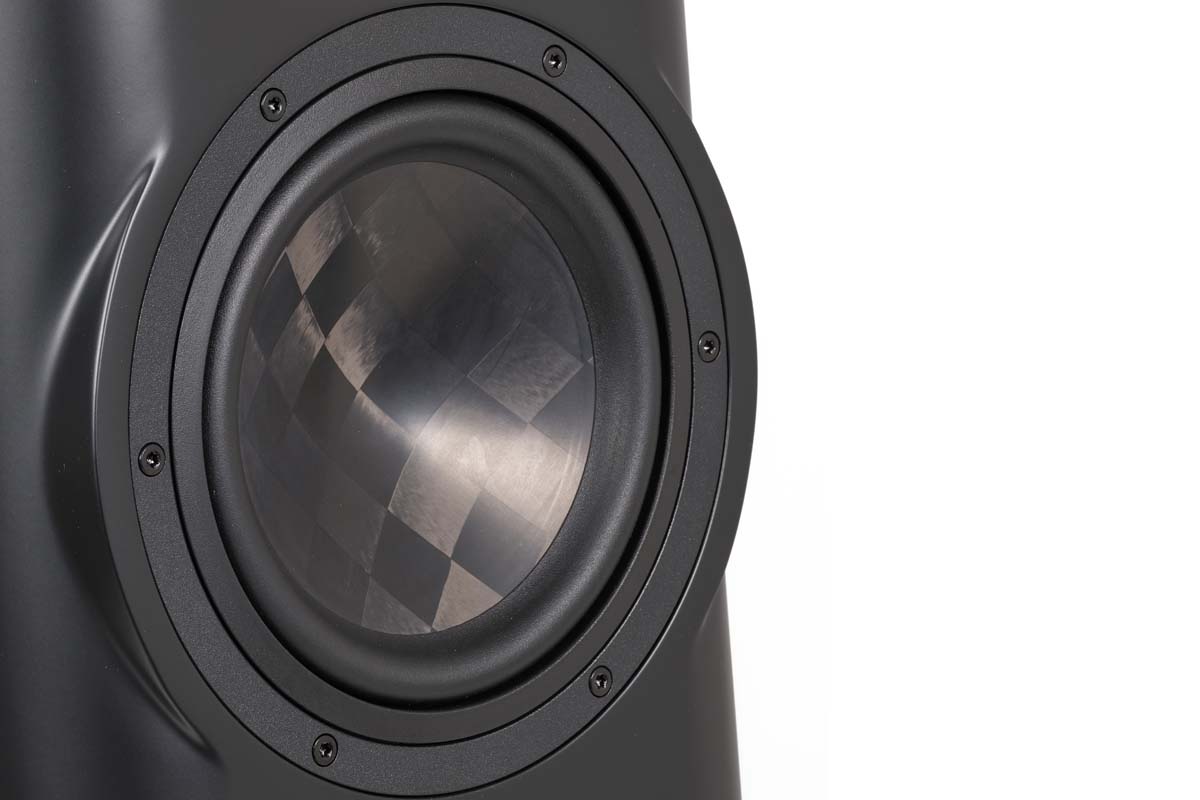 Was die Perlisten aber wirklich aus der Masse heraushebt, sind die State-of-the-Art-Treibermaterialien: Der Tweeter besteht aus Beryllium, einem Metall, das nicht nur über ein unschlagbares Verhältnis von Steifigkeit zu Dichte verfügt, sondern zudem auch – recht untypisch für ein Metall – hervorragende Dämpfungseigenschaften mitbringt und somit einen Frequenzgang bis weit über die Grenzen des menschlichen Gehörs hinaus ermöglicht, ohne in üble Resonanzspitzen aufzubrechen. Alle anderen Treibermembranen bestehen aus einem speziellen Kohlefaserwerkstoff namens „Textreme“. Durch die besondere Anordnung der Carbonfasern, die den Tiefmitteltönern ihre charakteristische schachbrettartige Textur verleiht, soll das Material bei gleicher Stärke rund 30 Prozent leichter sein als gewöhnliches Carbon.