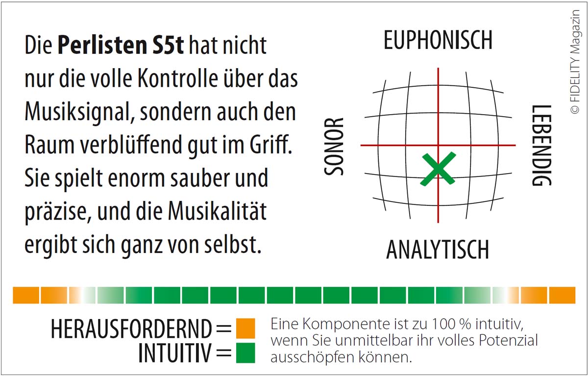 Die Perlisten S5t Audio Reference Edition hat nicht nur die volle Kontrolle über das Musiksignal, sondern auch den Raum verblüffend gut im Griff. Sie spielt enorm sauber und präzise, und die Musikalität ergibt sich ganz von selbst.