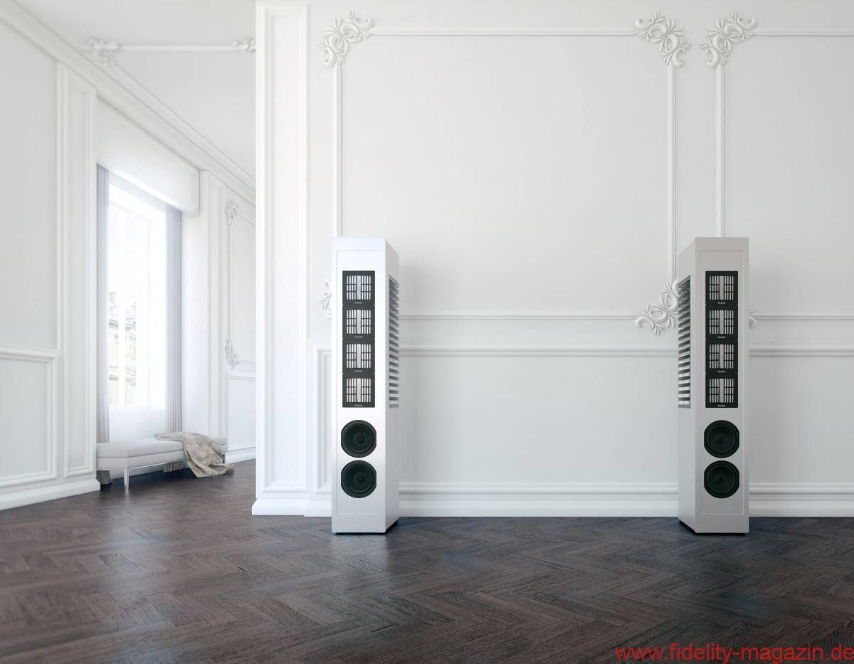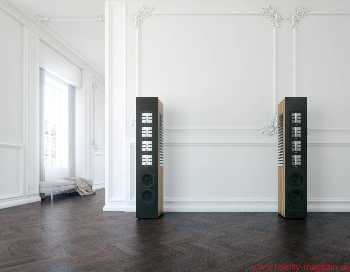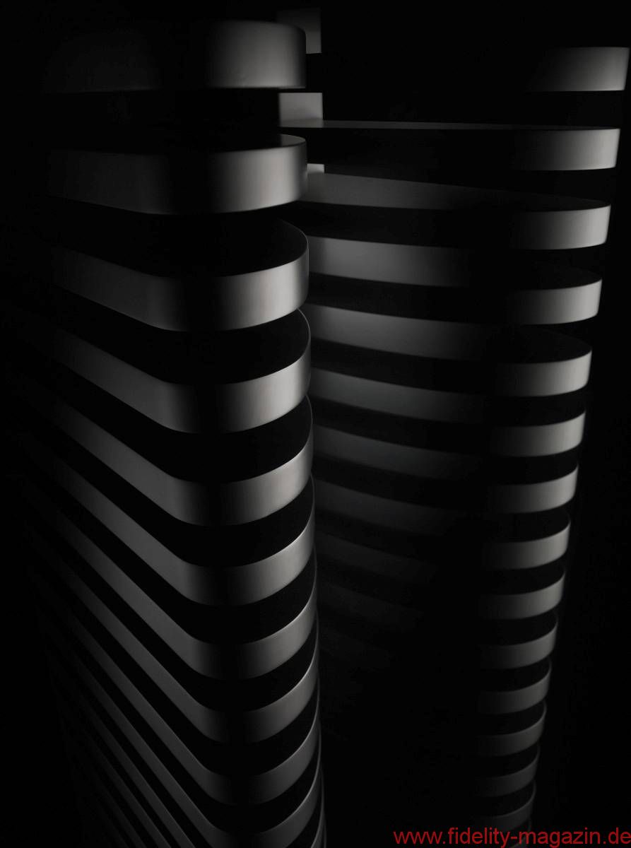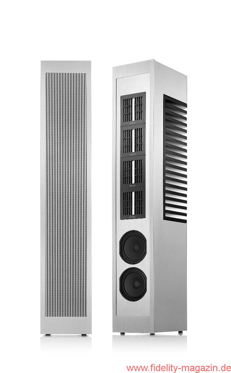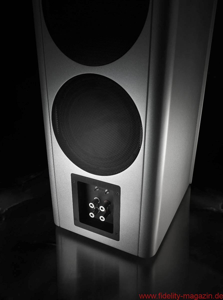 Um die hohe Güte und Verzerrungsfreiheit der Treiber und die akustischen Qualitäten kompromisslos umzusetzen, wurde beim Gehäuse größtes Augenmerk auf Schwingungsfreiheit gelegt. Die gesamte Schallwand des Lautsprechers ist aus einem massiven Aluminiumblock gefräst und von beeindruckender Stabilität und Dämpfung. Die 10 mm starke Aluminium-Schallwand ist ganzflächig mit dem eigentlichen Gehäuse verklebt.