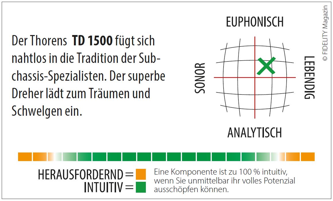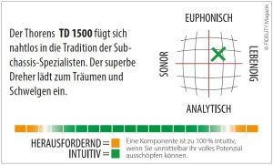 Gunter Kürten schnürt für knapp zweitausend Euro ein Rundum-Sorglospaket, inklusive Abdeckhaube und System, das klassische Werte wie Design und Haptik mit moderner Feinmechanik, elektronischer Steuerung und klanglicher Vielseitigkeit verschmilzt. Mit dem TD 150 legte Thorens das Fundament für eine Ikone. Im TD 1500 findet diese ihre klangvolle Fortführung in bester Tradition. Legenden leben länger!