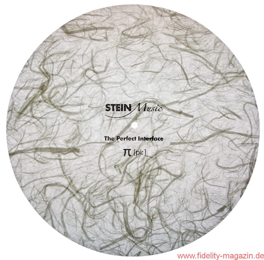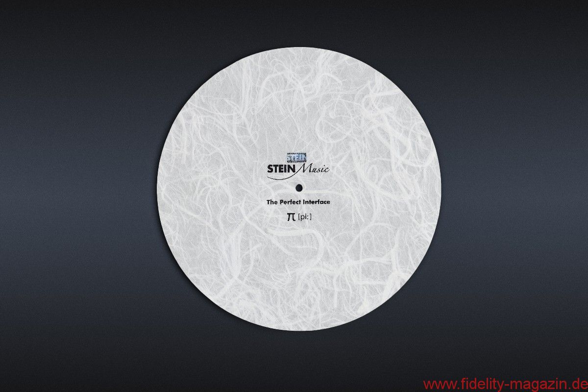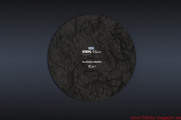 Holger Stein, Mastermind der Firma SteinMusic – bekannt für außergewöhnliche Audio-Lösungen – hat sich dem Thema Plattentellerauflage angenommen. Sie heißt „Perfect Interface“, kurz π [piː] und ist Mittler zwischen Platte und Plattenteller. Nach Holger Steins Auffassung sollte diese eine ideale Balance zwischen Entkopplung und Resonanzableitung herstellen. Dämpfende Plattentellerauflagen bedämpfen nämlich auch die feinen Informationen, die wir eigentlich hören wollen. Das Ergebnis ist eine sehr dünne Matte, die komplett mit einem für Audio-Anwendungen optimierten, im Hause SteinMusic gefertigten Naturharzlack getränkt ist.
