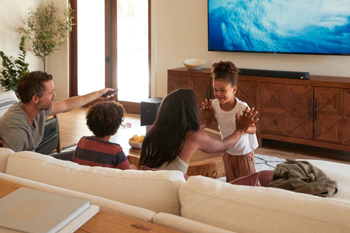 Das Flaggschiff besitzt zusätzlich einen kabellosen Subwoofer für eine verbesserte Basswiedergabe. Darüber hinaus sind zwei kabellose Surround-Lautsprecher für ein intensives 5.1-Sound-Erlebnis enthalten. Musikstreaming, benutzerdefinierte Klangmodi und eARC-TV-Konnektivität runden die Funktionen dieses erschwinglichen All-in-One-Systems ab.