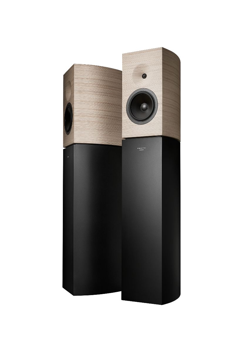 veneers, accurately machined, aligned and glued, yielding a look that’s both simple and complex, and yet timeless. Each speaker features a unique hybrid laminar port using progressive termination for reproducing low frequencies. Machined into the wood material along the full height of the speaker system, the very low velocity port yields optimal linearity for the lowest possible distortion.