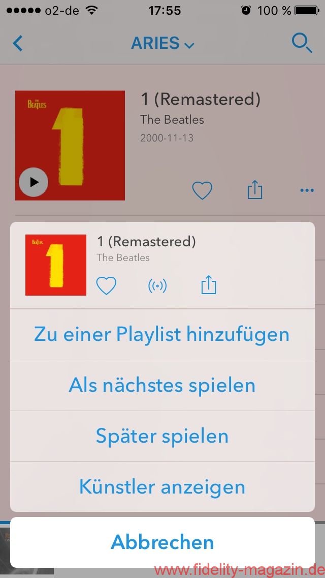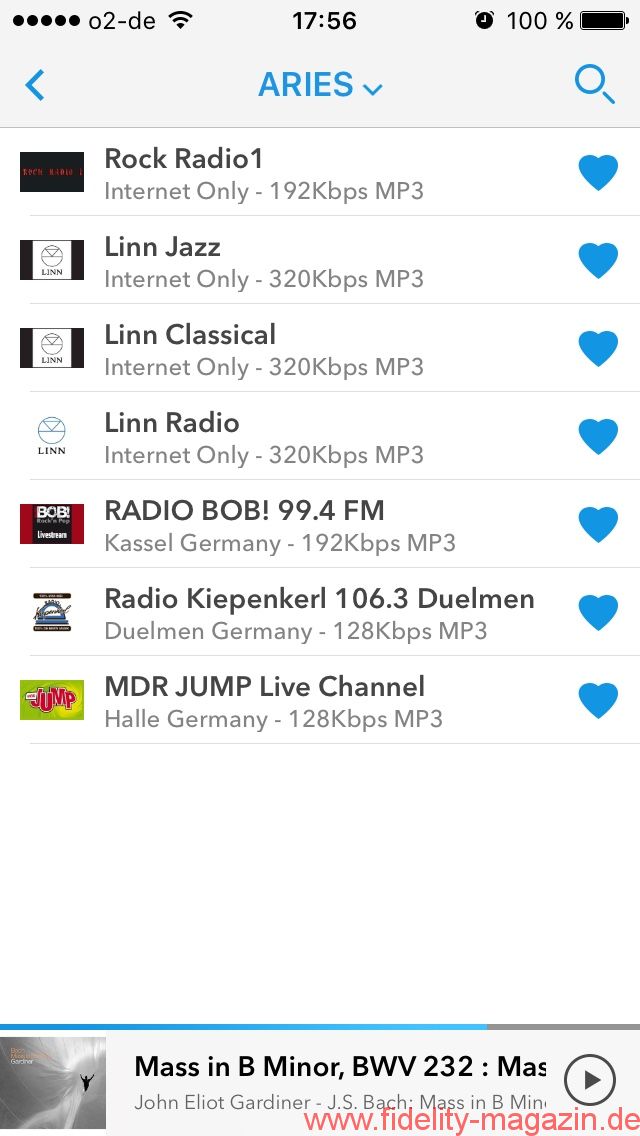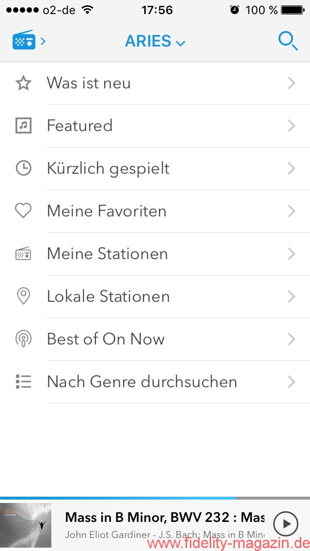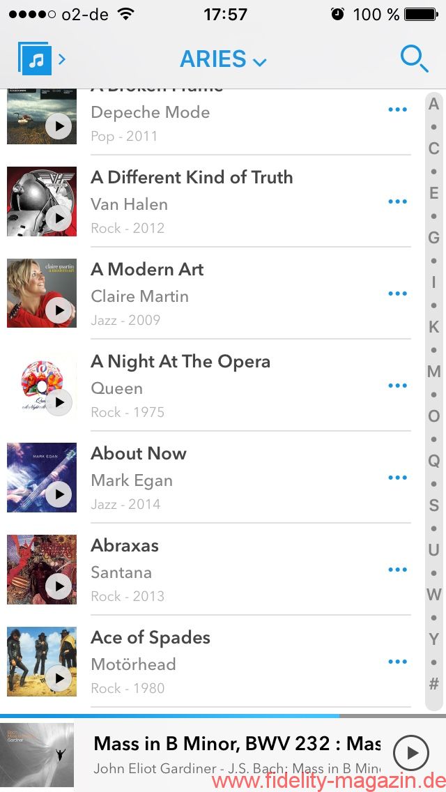 Das Design wurde entworfen, um den Betrieb in einer Hand zu ermöglichen. Die Geschwindigkeit beim Navigieren durch das Musikarchiv, welches sich auf einem NAS, Computer, auf externen USB-Festplatten oder der internen Festplatte (nur ARIES MINI) befinden kann, sucht seinesgleichen. Die Metadaten werden lokal im iPhone gespeichert, damit sie immer schnell verfügbar sind, anstatt während des Durchstöberns des Archivs per WLAN aktualisiert werden zu müssen.
